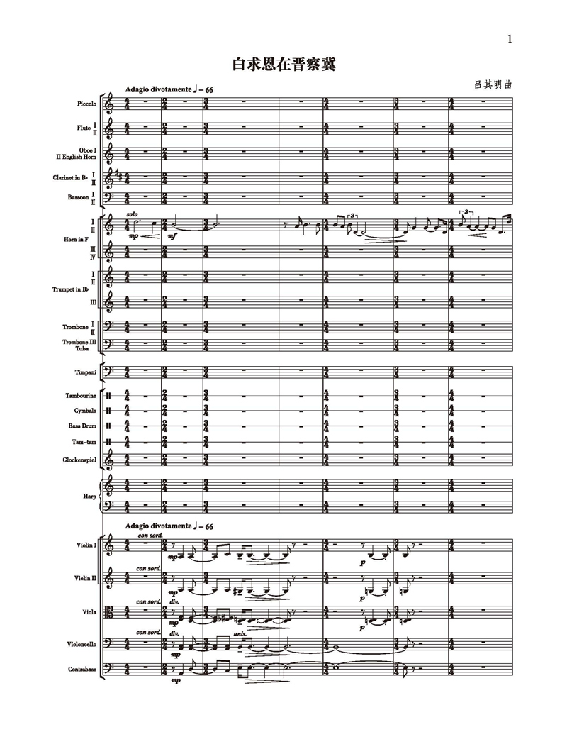 随想曲《白求恩》由吕其明创作于2020年疫情期间。吕其明从新闻里目睹万千白衣战士不顾个人安危奋战一线的事迹,深受触动,于是以此前写过的电影音乐《白求恩大夫》为素材,创作了一部时长17分钟的单乐章随想曲,以此歌颂白衣天使不畏艰险救死扶伤的伟大精神。白求恩一直是是吕其明同志的偶像。2020年新冠肺炎疫情最严重时,他从新闻里目睹万千白衣战士不顾个人安危冲上前线奋力拼搏,深受触动,身为一个作曲家,他始终觉得应该做点什么。电影《白求恩大夫》的画面就这样涌上心头。1963年,为了电影创作,吕其明所在的上海电影制片厂和八一电影制片厂联合组队下生活。七八个月的所闻所感,在彼时的年轻作曲家心间刻下烙印,“国际主义战士的精神和这个人物,从那时起就在我心中树起了丰碑,是个永恒的题材”。在特殊的2020年,吕其明着手续写这个“永恒的题材”。他以电影的原创音乐为素材,创作这部单乐章作品。电影里,白求恩与根据地的军民相互依存。由此,他想到用随想曲的方式,既写白求恩,也用一定的篇幅来表现根据地军民与这位国际主义战士的关系,表达对白求恩的崇敬和缅怀,也讴歌不顾生死捍卫人民生命安全的白衣战士。