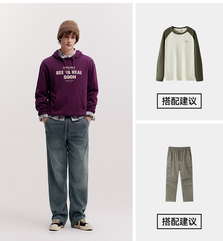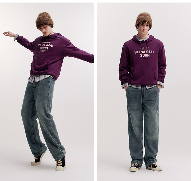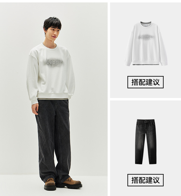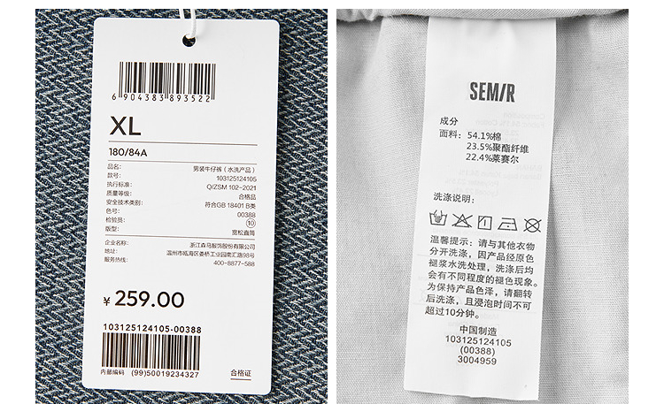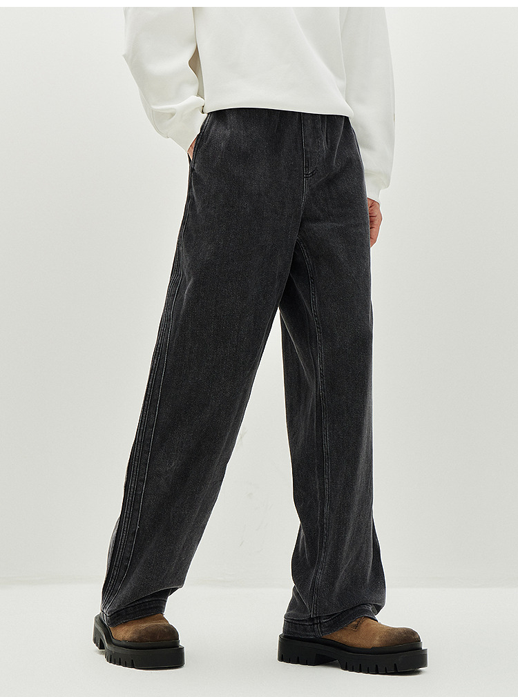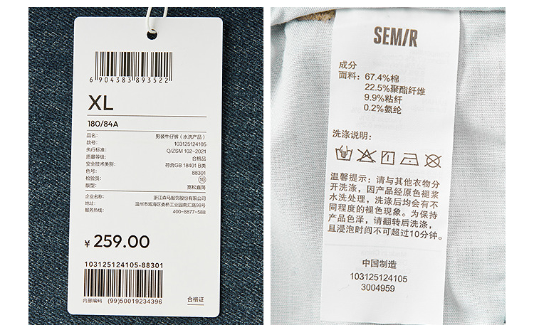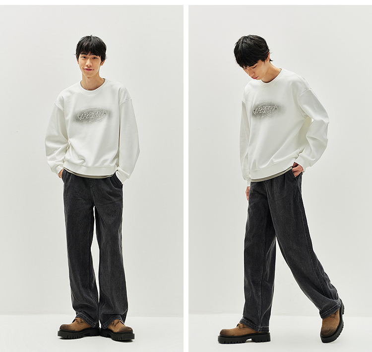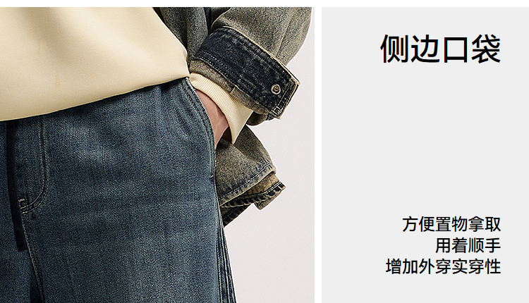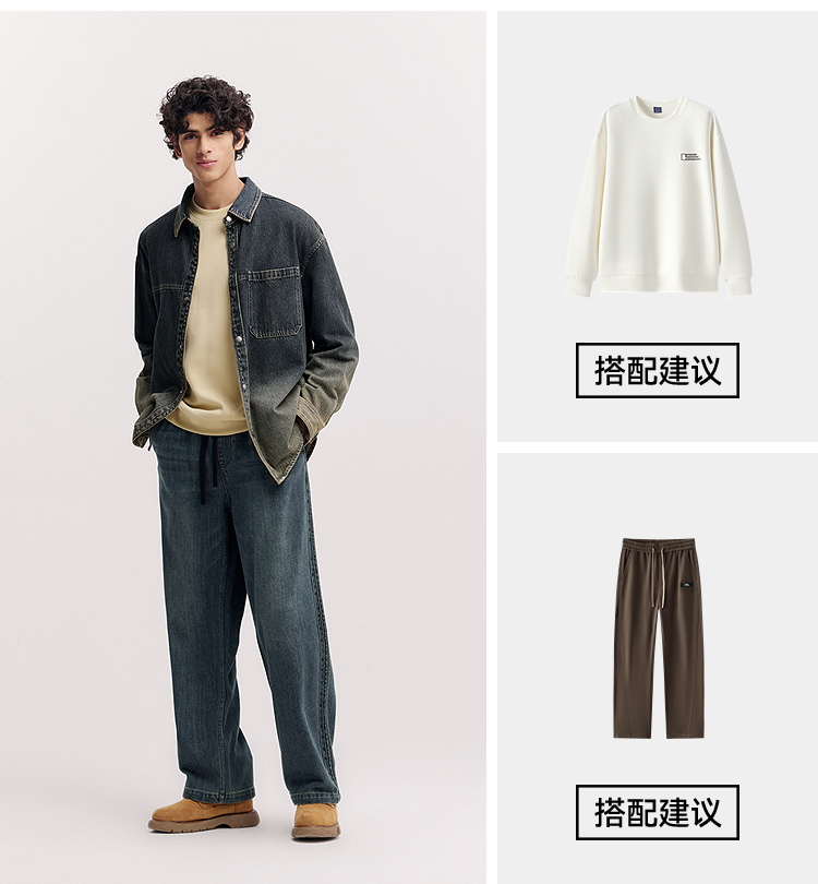 森柔|森马牛仔裤男春宽松直筒牛仔长裤抽绳松紧腰裤肌理提花