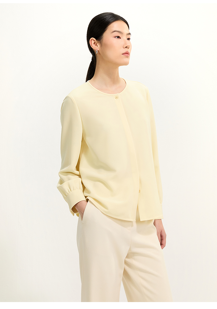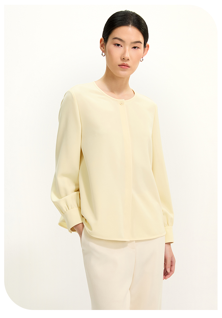 PURE TOUCH气质女神必备简约米黄长袖上衣小衫1301251003