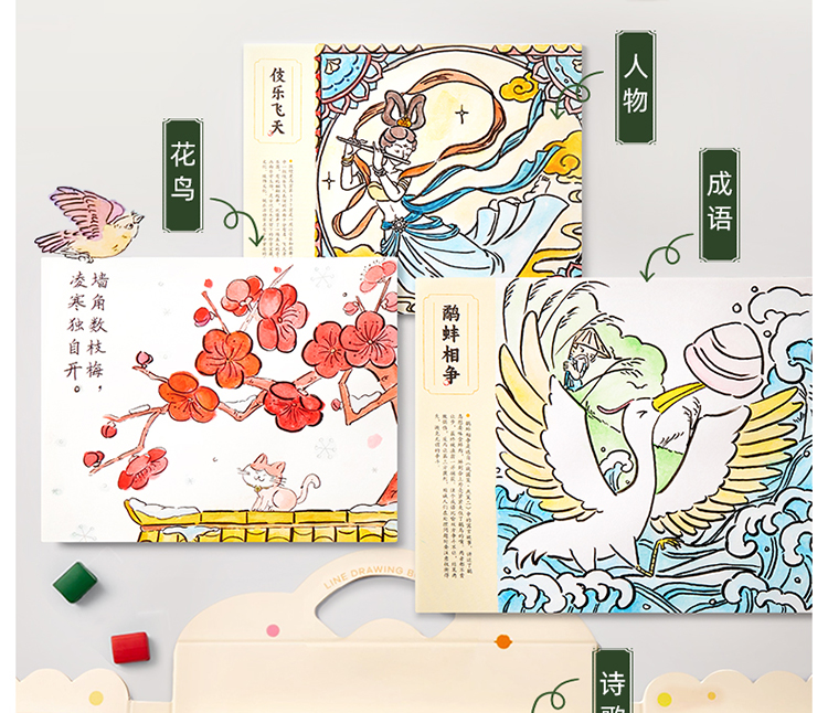 美乐童年画说国学白描本儿童涂色画本画画临摹控笔训练幼儿园专用