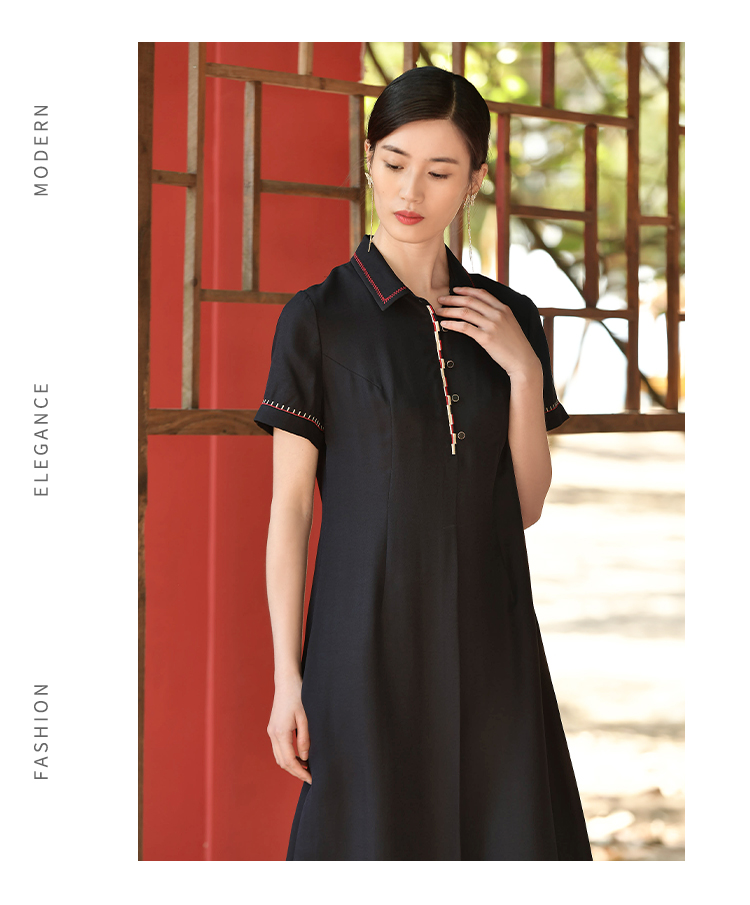 佐尔美夏季新款 国风气质桑蚕丝真丝连衣裙女E32LS52