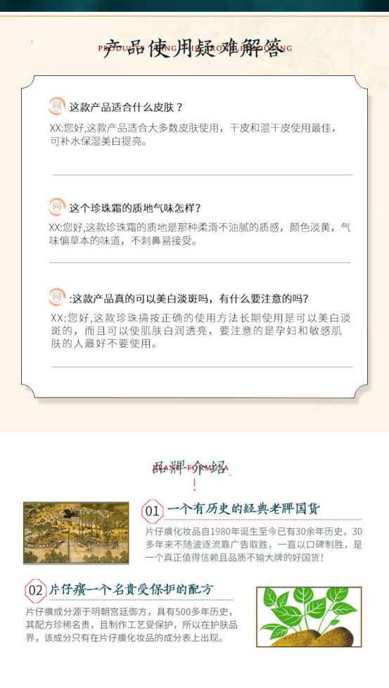 🖤【片仔癀皇后珍珠霜3瓶装赠送1支灵芝旅行调肤水】🌵1、片仔癀是著名的中华老字号,460年非物质文化遗产📣