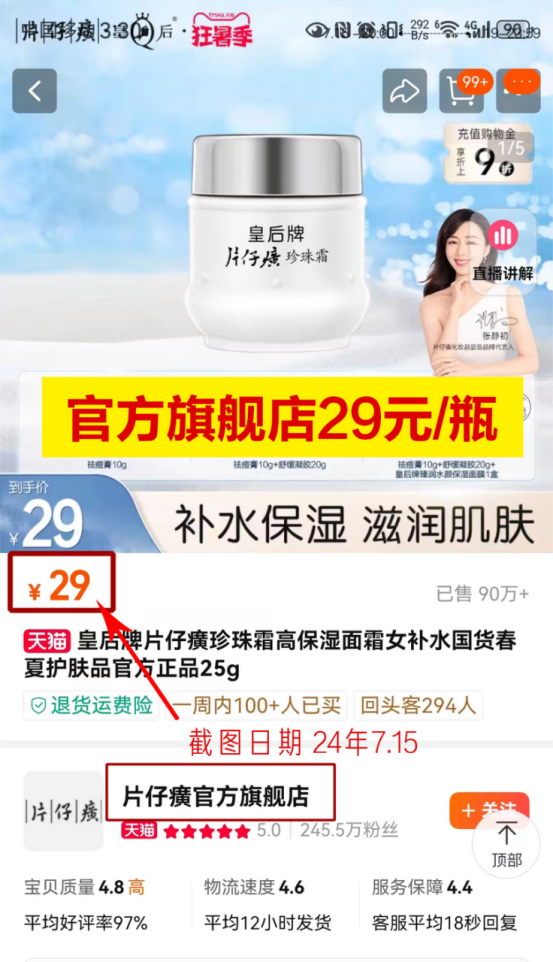 作为中国护肤界的国粹! 奶奶辈就红透半边天的~片仔癀! 已被列为国家非物质文化遗产! ❗珍珠霜每瓶沉甸甸的25克 天猫官方旗舰店29元/瓶 咱们团购3瓶到手💰39.9元❗ 还加赠1支片仔癀灵芝调肤水20ml!! 品牌直发,正品保证带防伪🉑 防伪码可查,一盒一码👇
