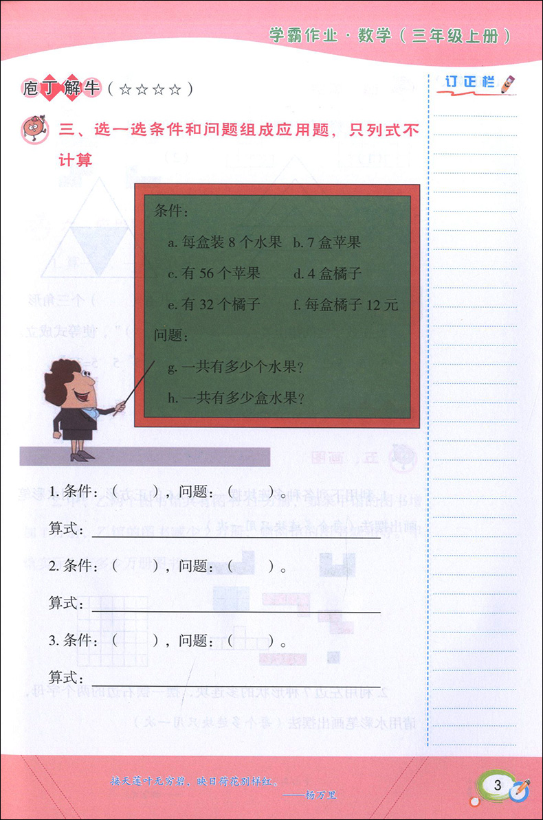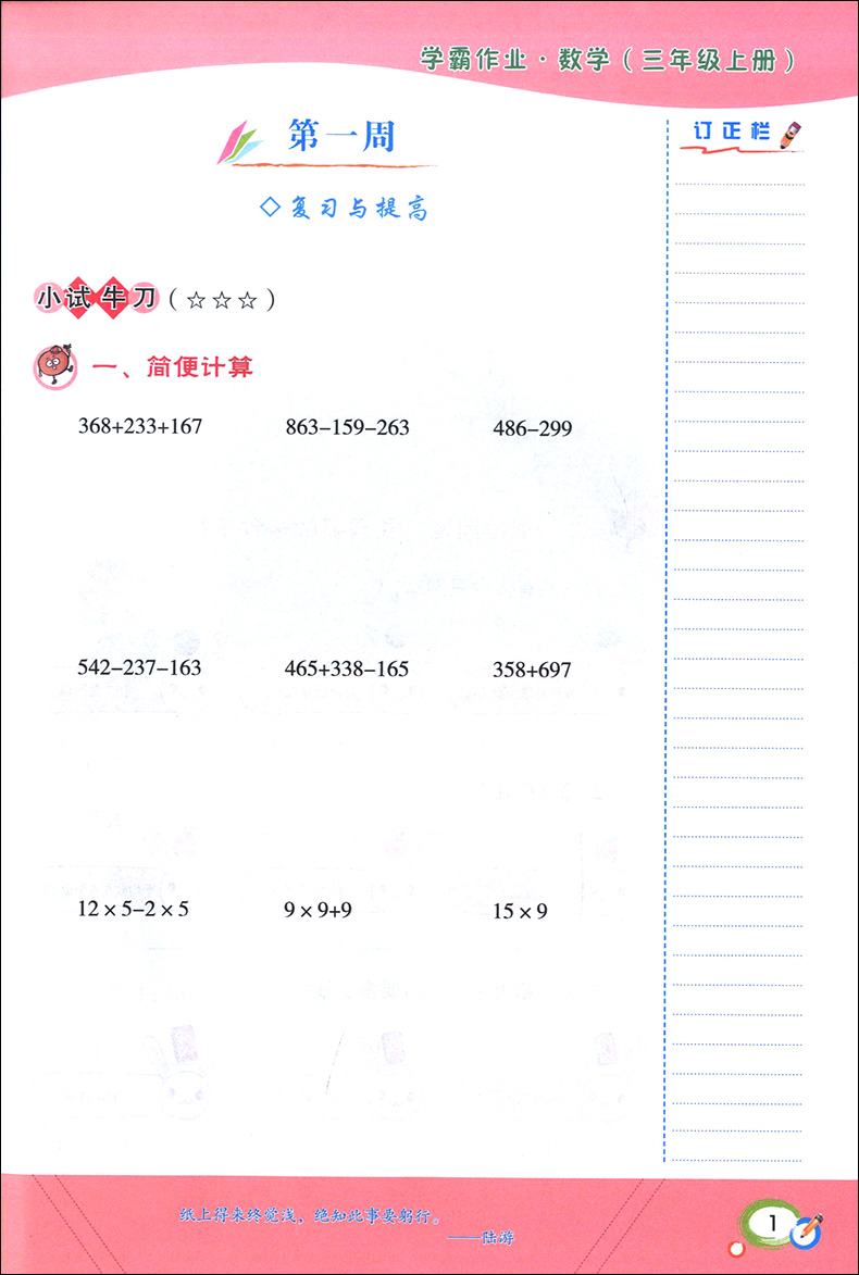 学霸作业 三年级上册/3年级第一学期 数学 含测试卷 与上海版教材配套教辅