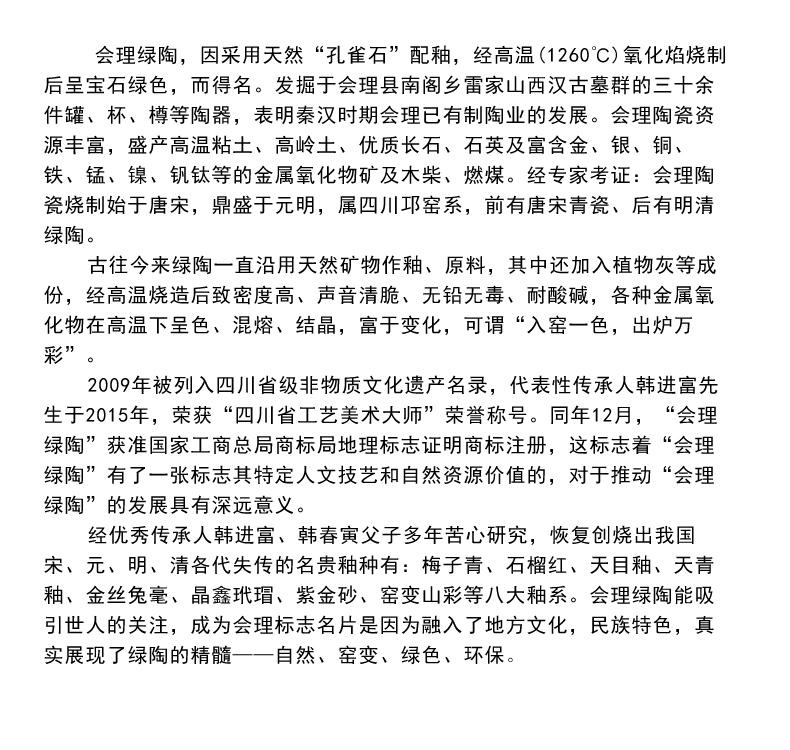 【会员价:268元】天府一品 凉山馆 会理绿陶窑变茶杯茶盏自然天成陶瓷个性私人订制家用办公礼盒装