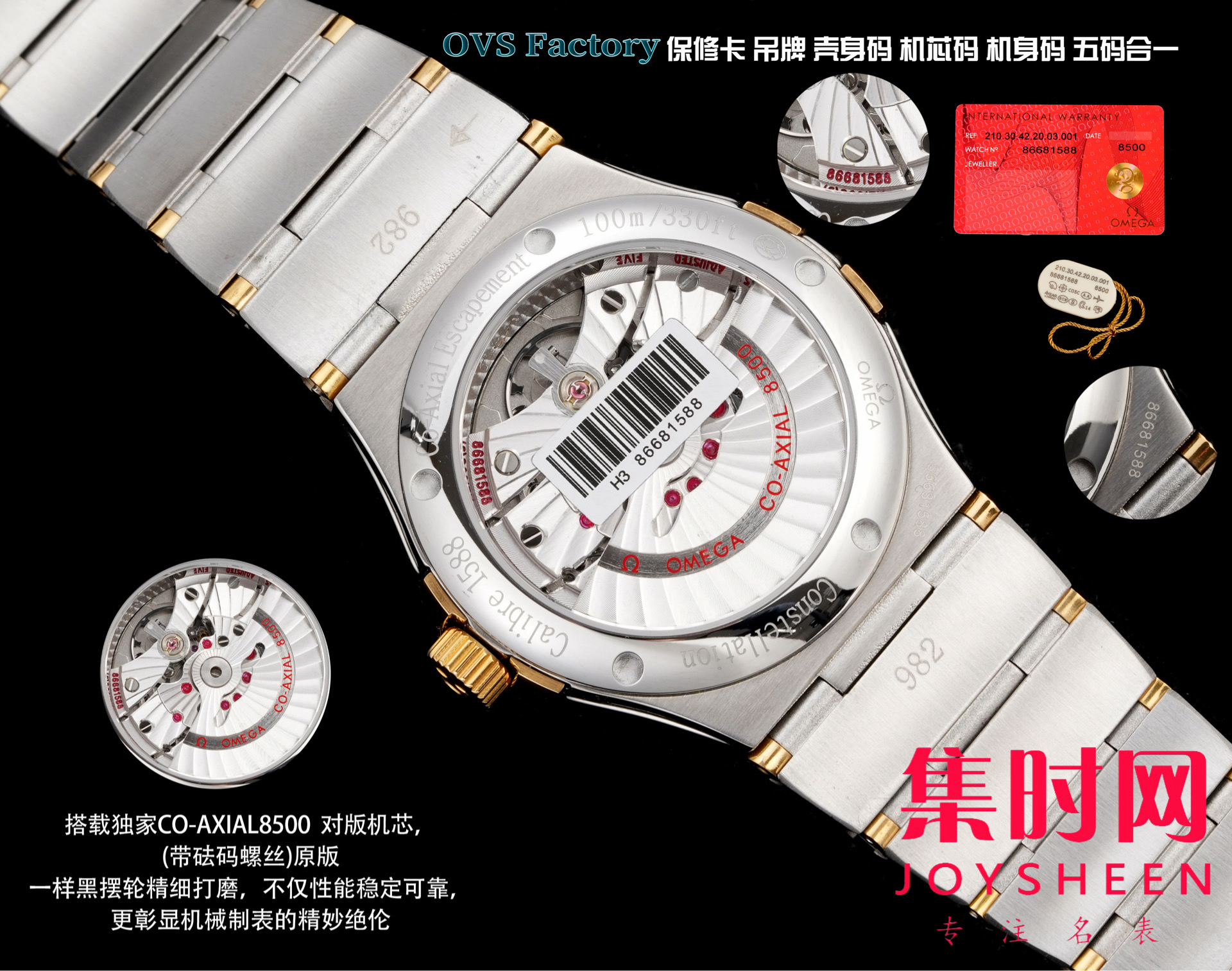 1:搭载定制Cal.8500/Cal.8501对版自动上链机械机芯,(带砝码螺丝)原版一样黑摆轮精细打磨,不仅性能稳定可靠,更彰显机械制表的精妙绝伦。