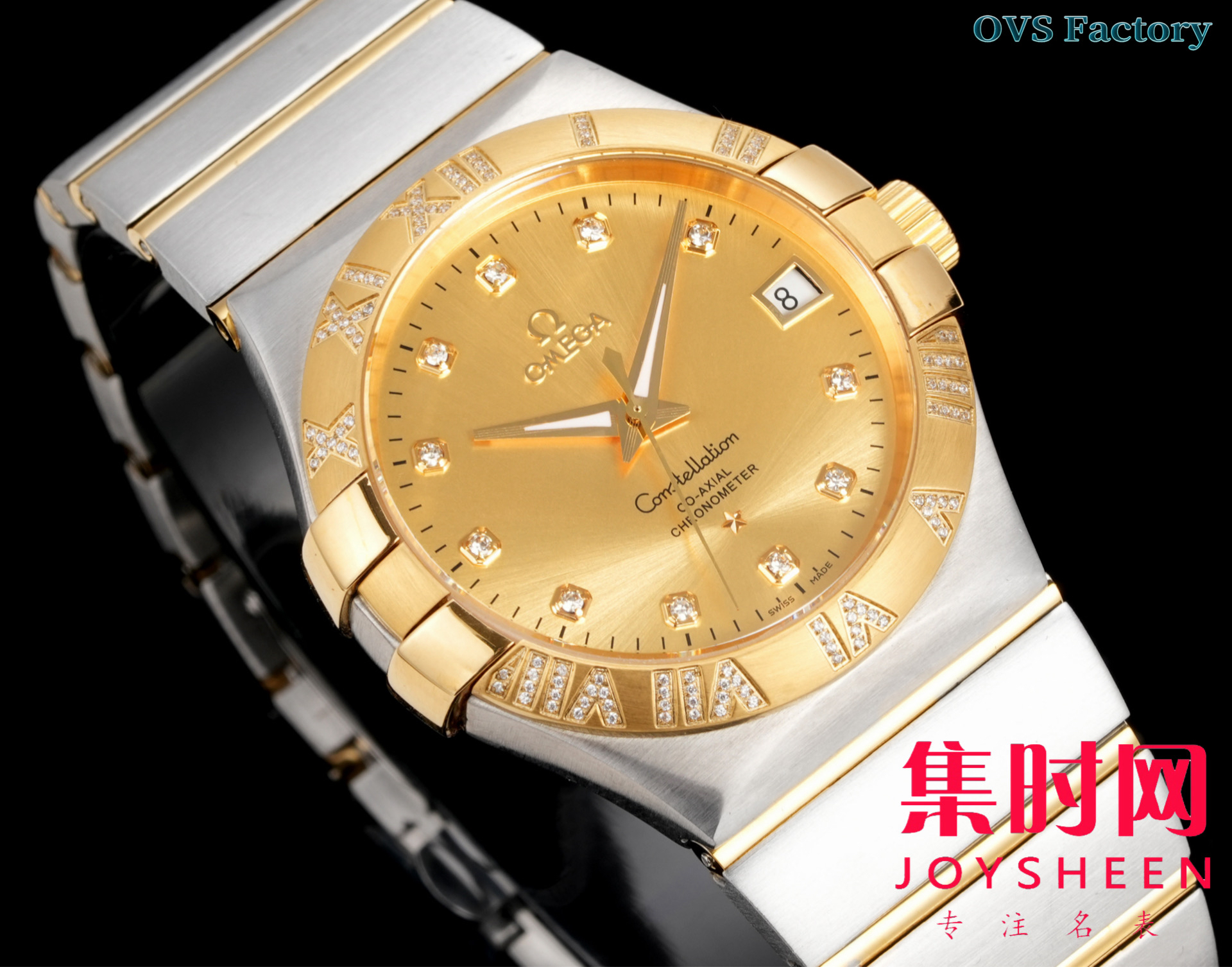 经典传承,卓越新生——欧米茄OVS星座情侣系列 罗马圈钻刻款 男士腕表 表径38mm 对版带砝码螺丝