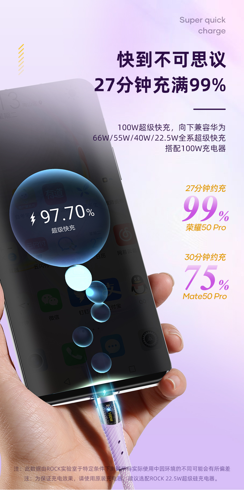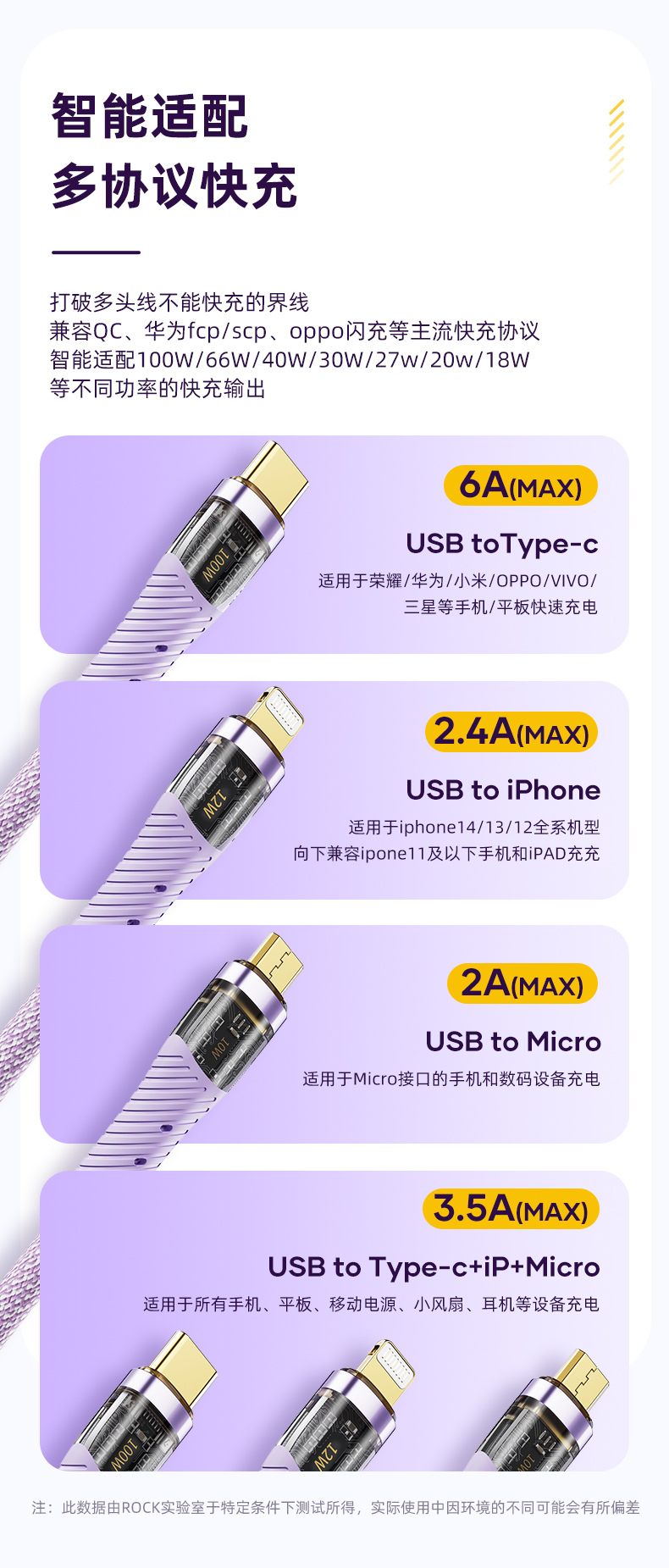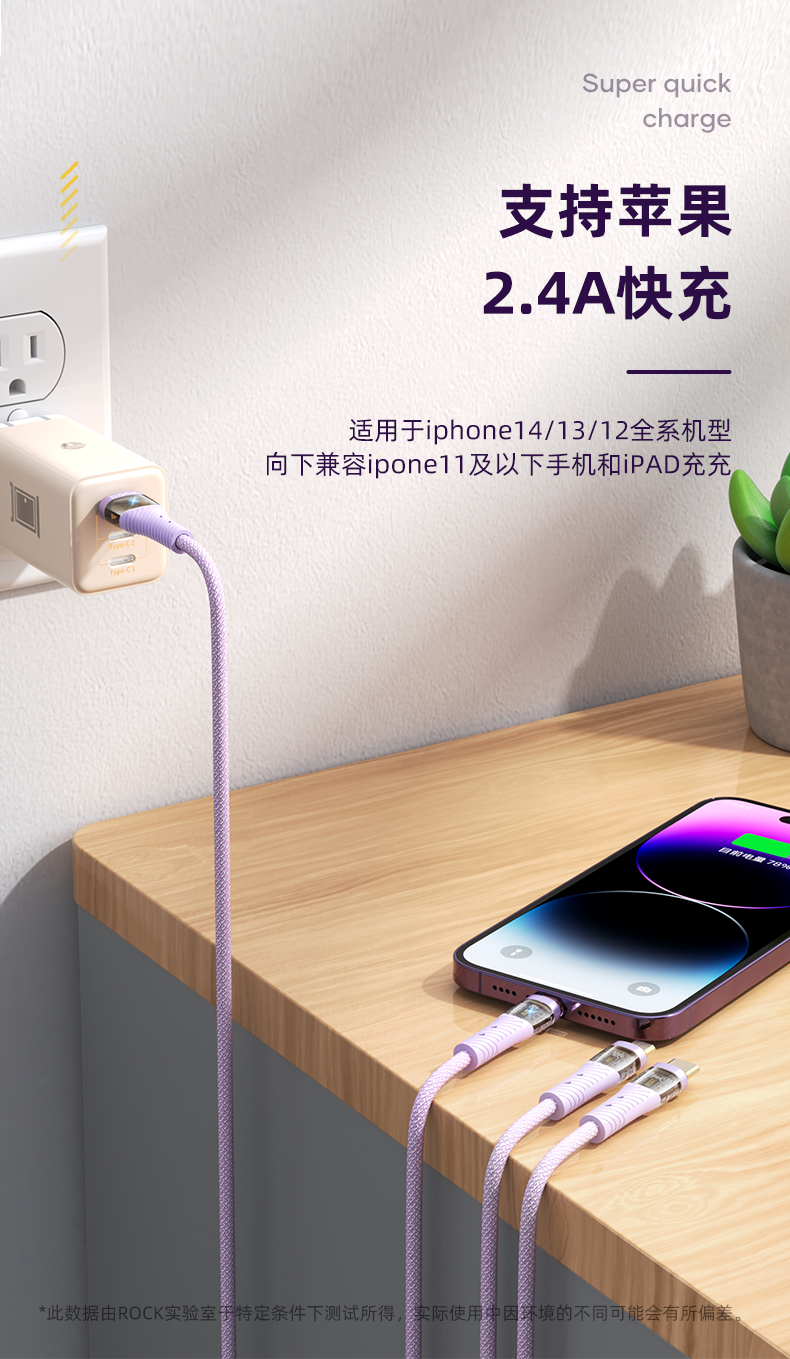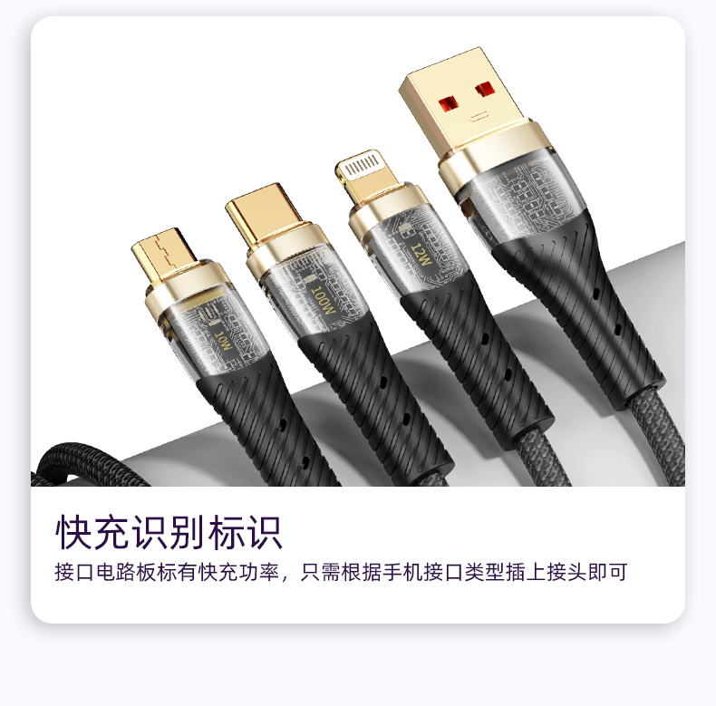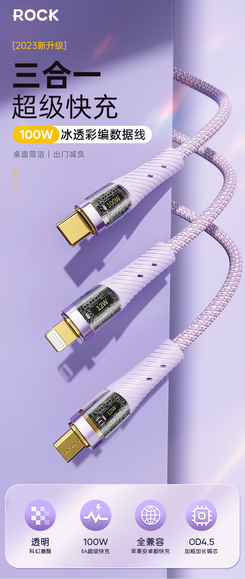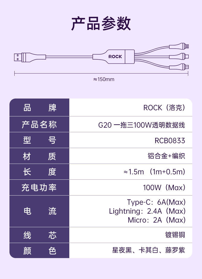 ROCK G20 一拖三透明快充数据线 L=150CM