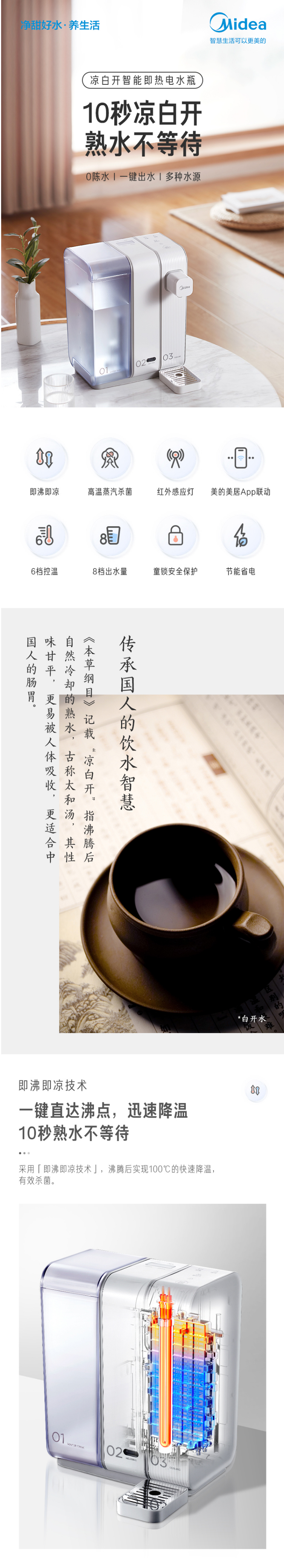美的(509652)即热即凉电热水瓶电热水壶烧水壶茶饮机2.5L智能净甜饮水机家用开水壶一键凉白开TH30X3-008