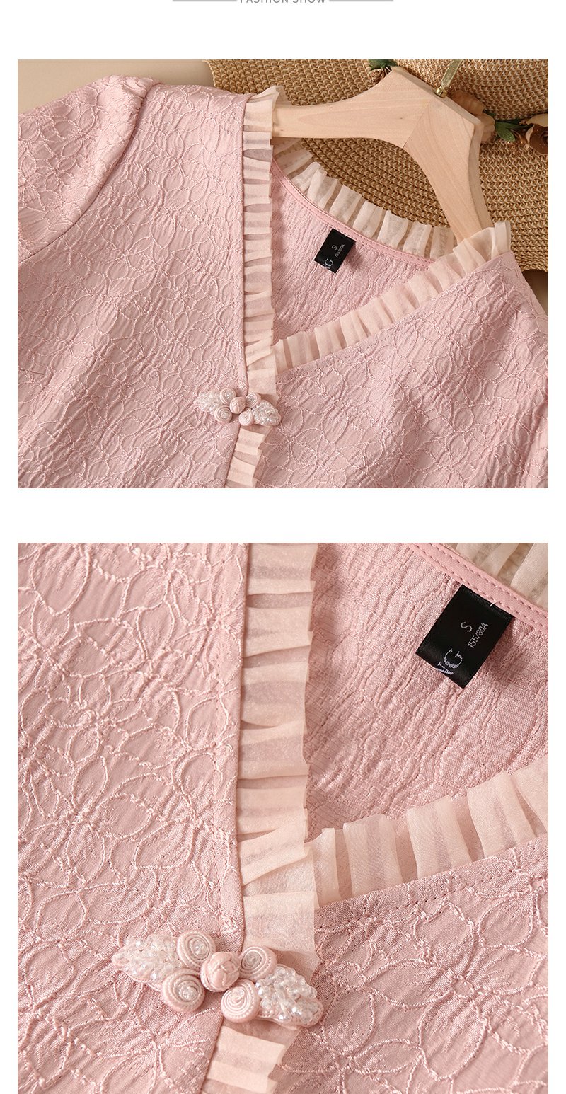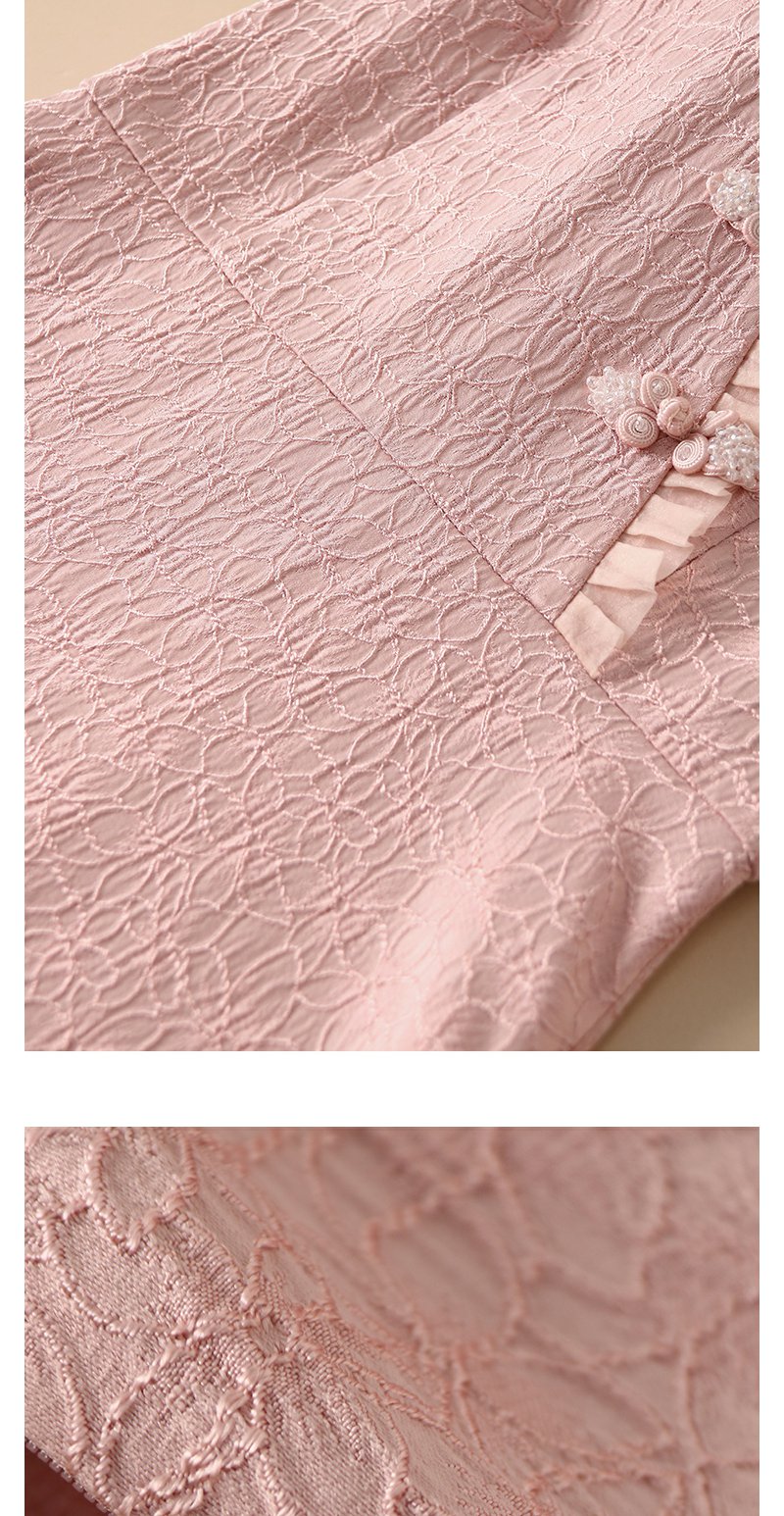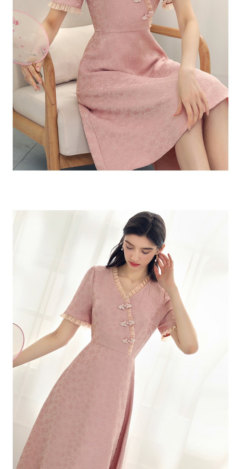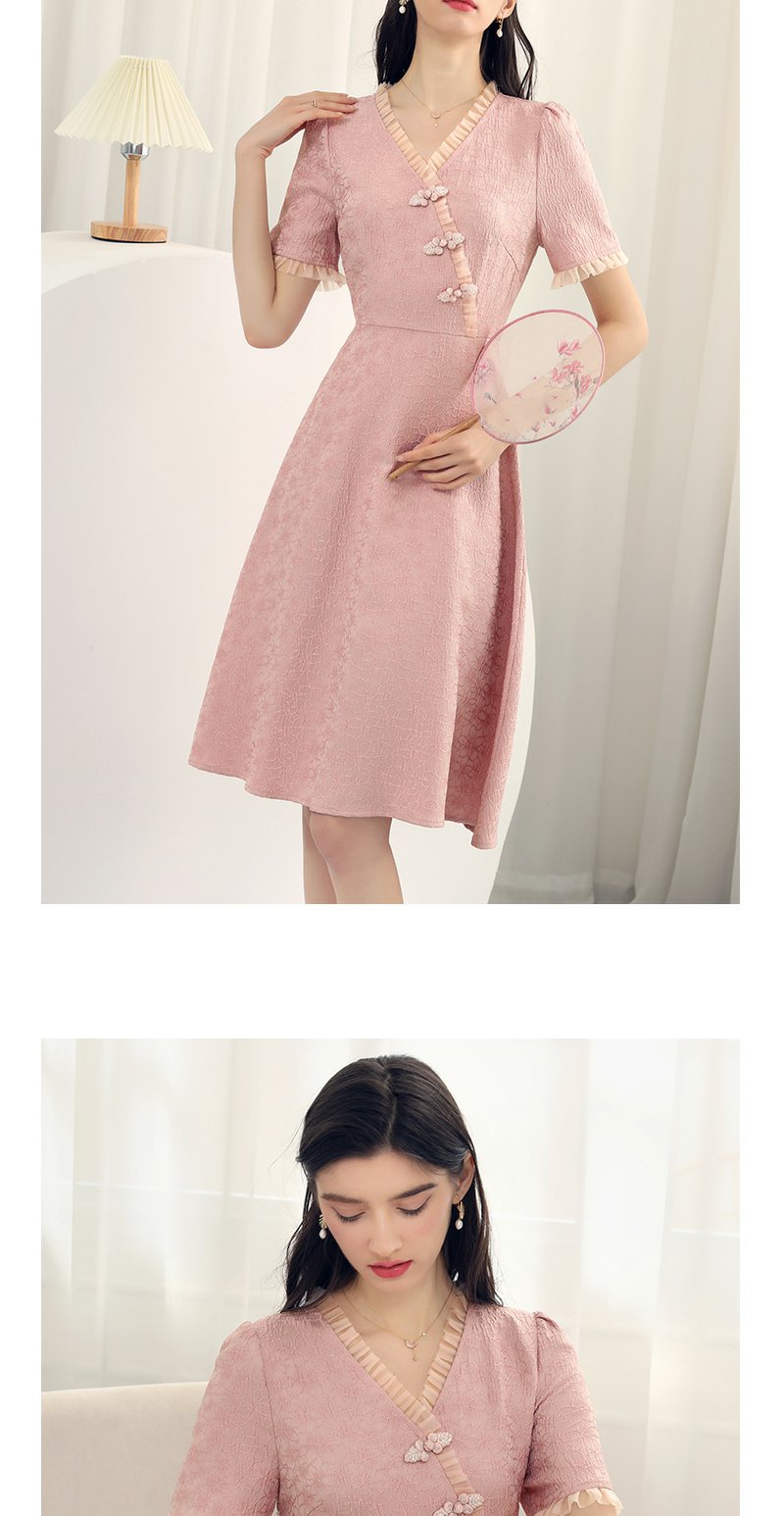 未风粉色V领连衣裙女夏2024年夏季新款女装气质修身显瘦减龄裙子