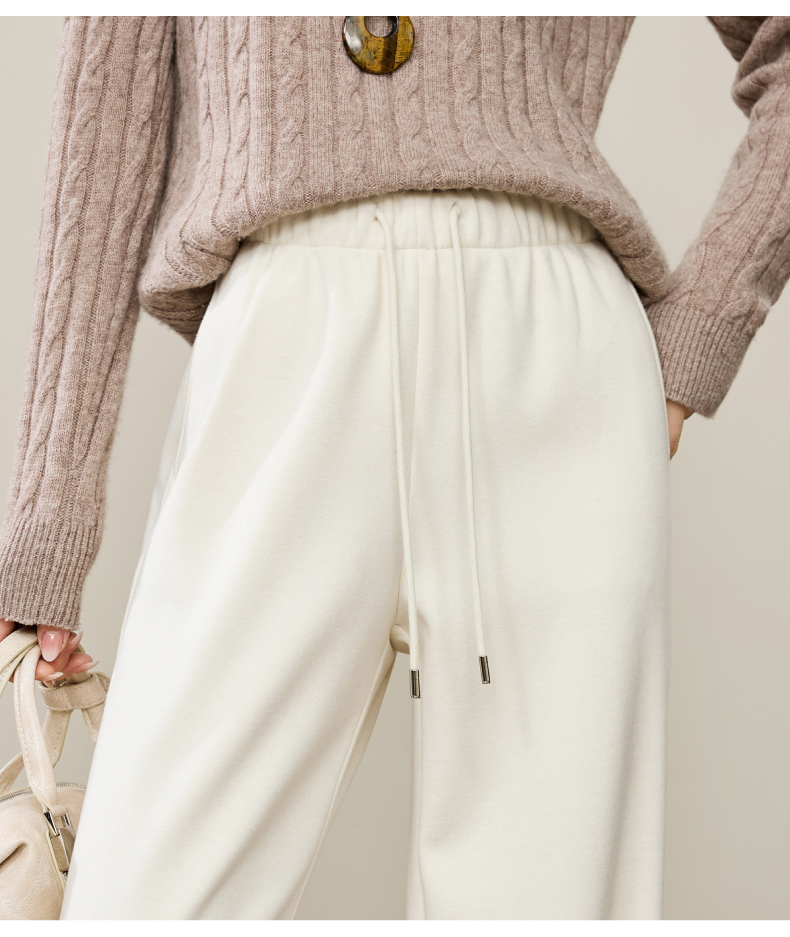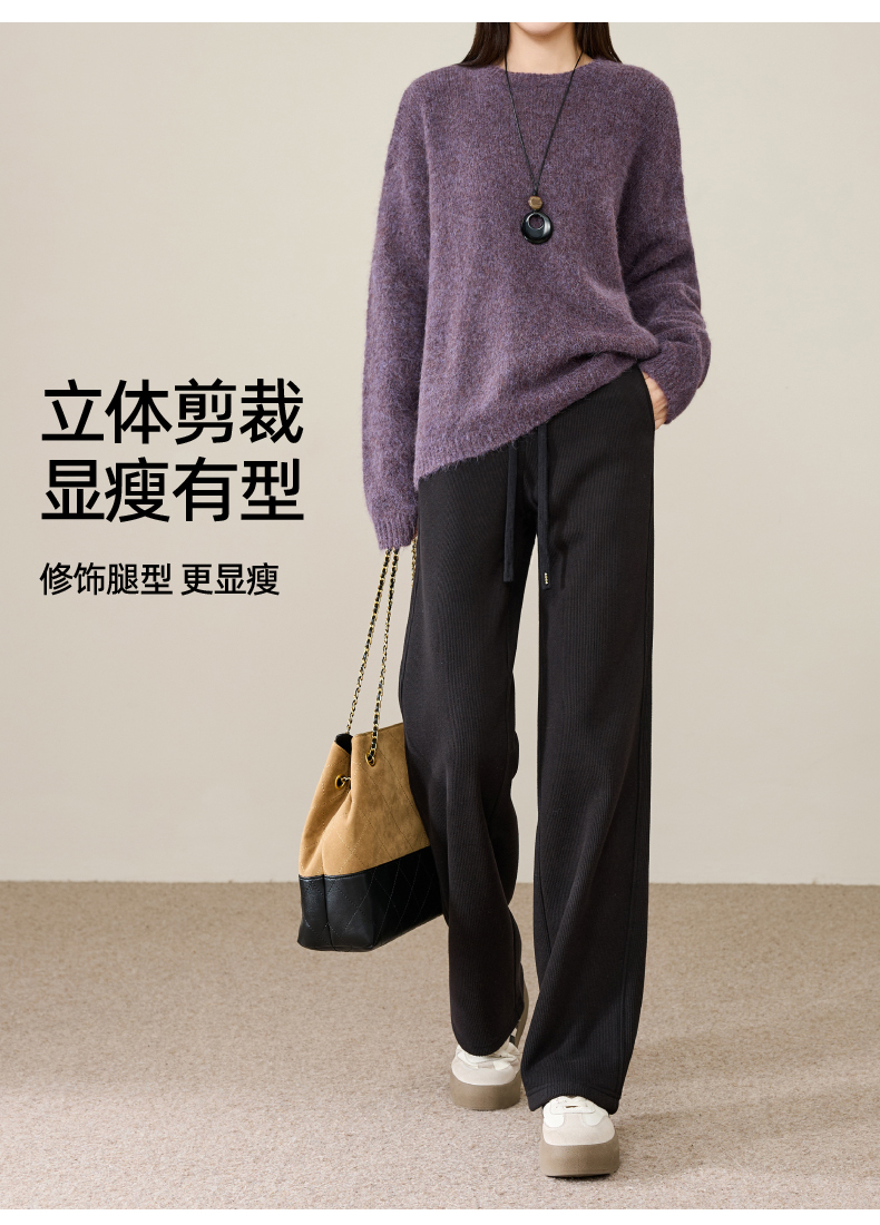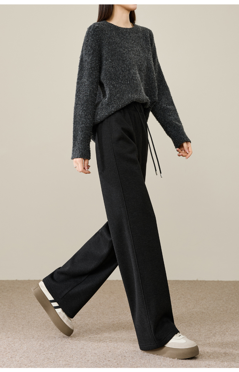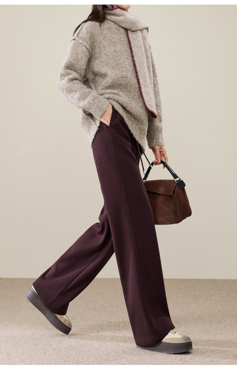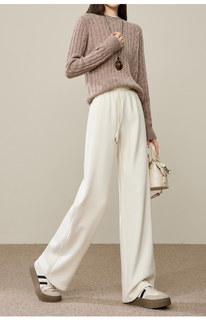 【两个裤长!厚绒长腿裤】逸阳冬新品加绒加厚高腰垂感针织窄版阔腿糯米裤0763A