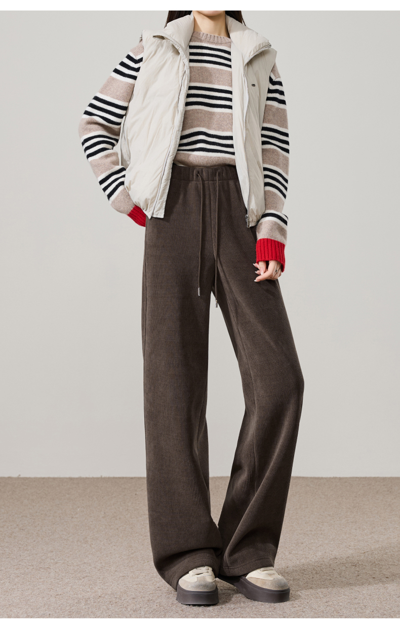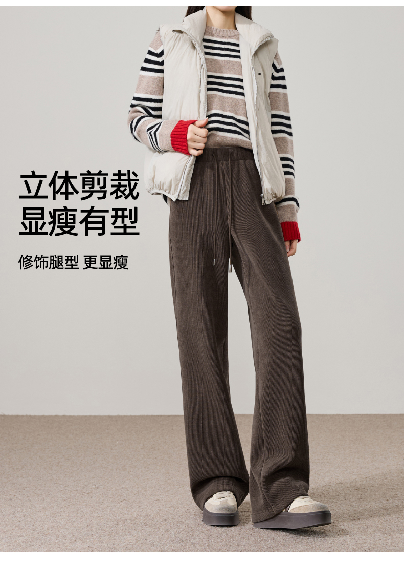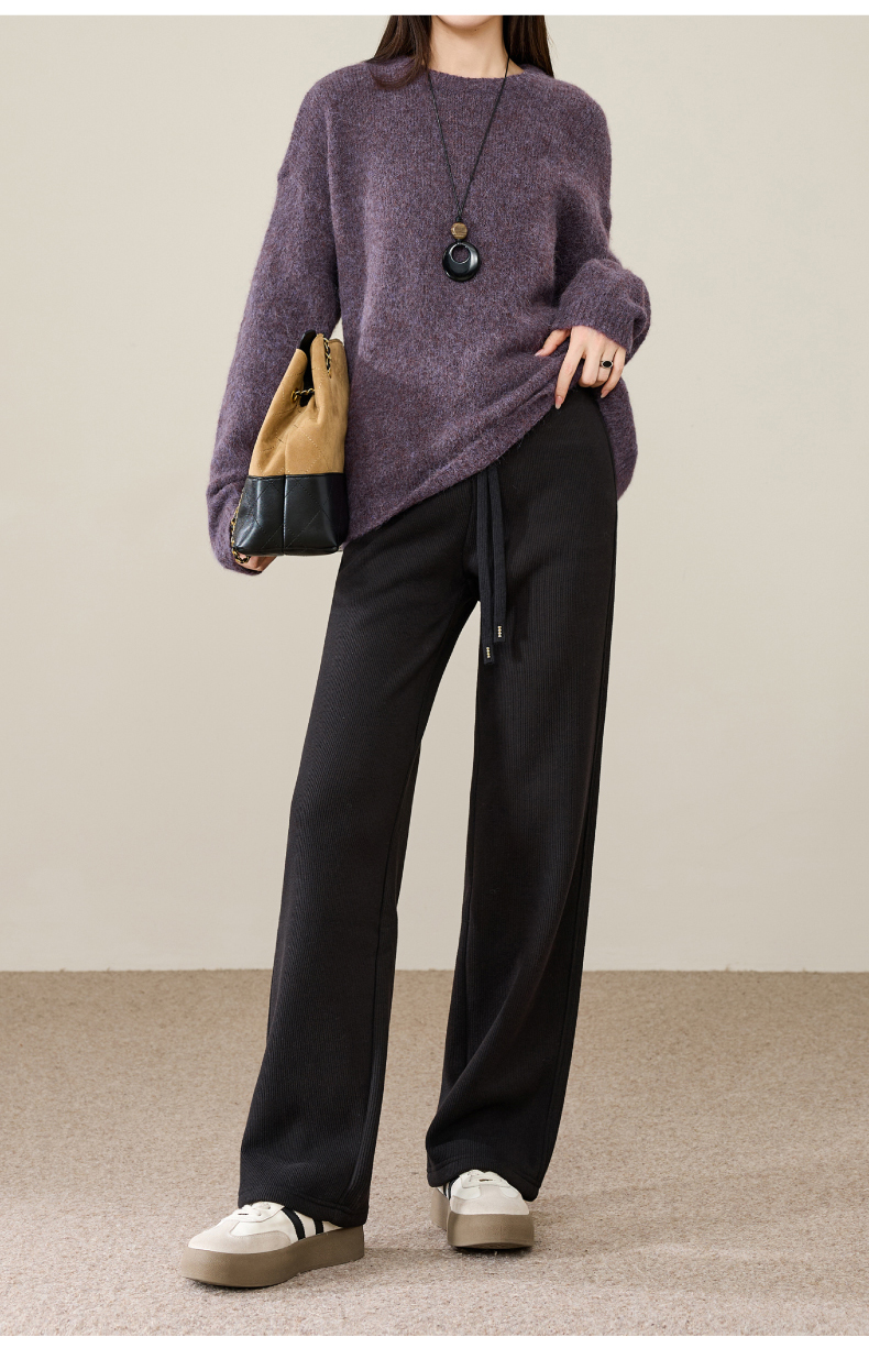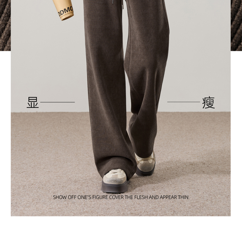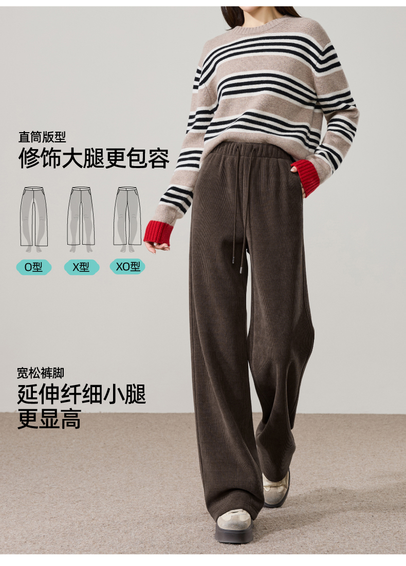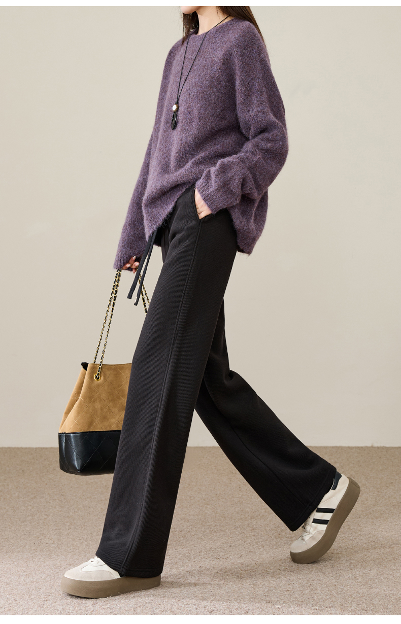 【两个裤长!厚绒长腿裤】逸阳冬新品加绒加厚高腰垂感针织窄版阔腿糯米裤0763A