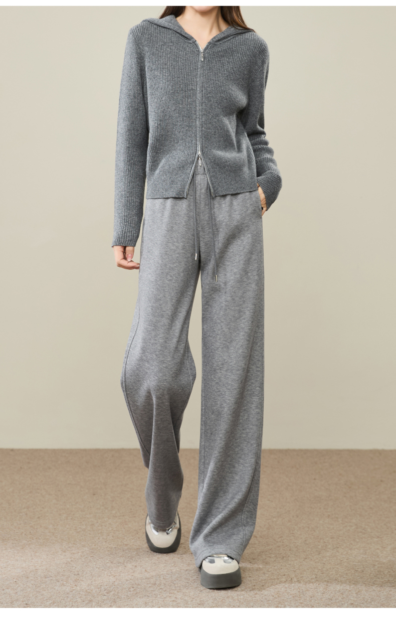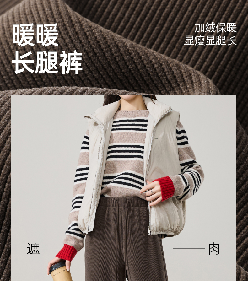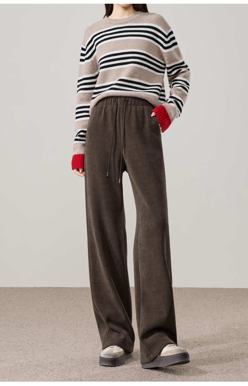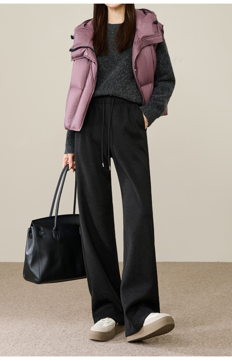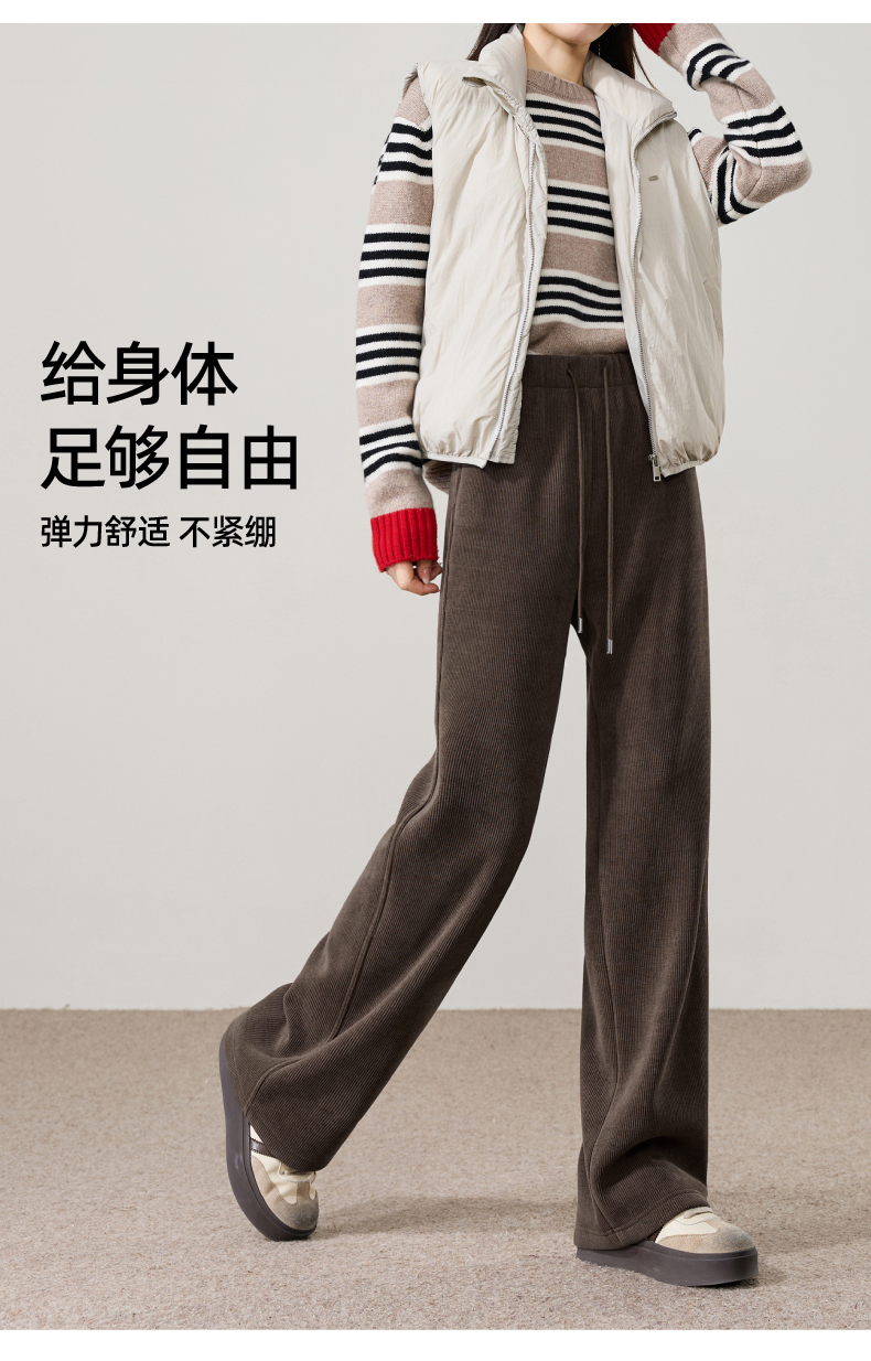 【两个裤长!厚绒长腿裤】逸阳冬新品加绒加厚高腰垂感针织窄版阔腿糯米裤0763A