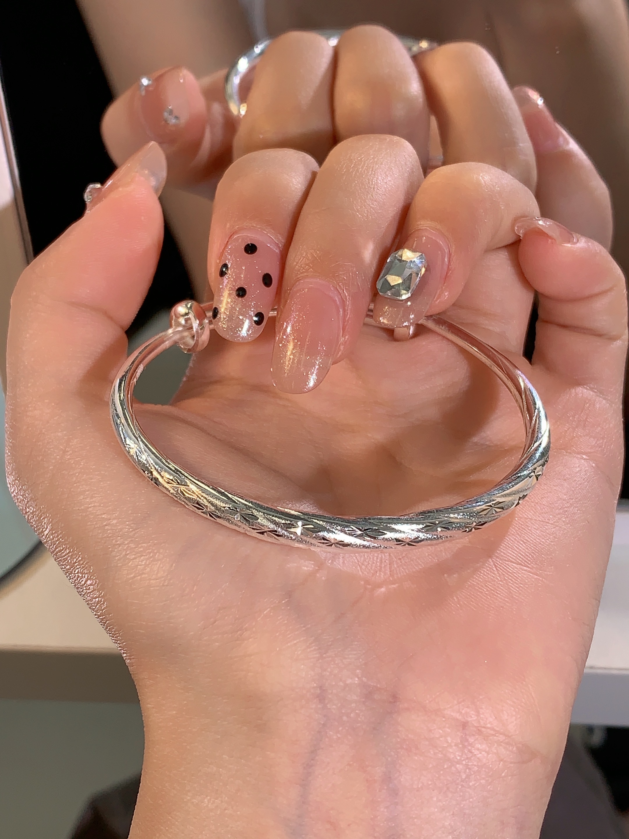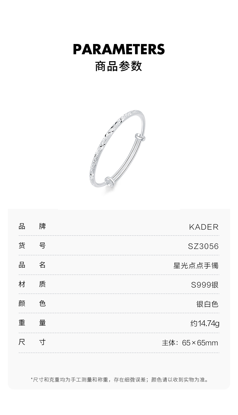 KADER卡蒂罗 星光点点 S999纯银浪漫银河时尚设计开口可调节实心配饰 闪耀星辰精致光芒首饰手镯 女款 礼物