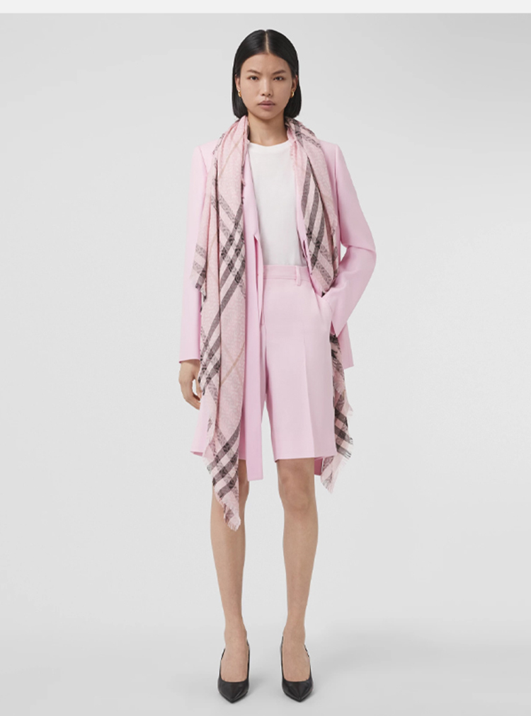 BURBERRY 巴宝莉 女士轻盈格纹丝毛混纺围巾 格子 8055871 A2889