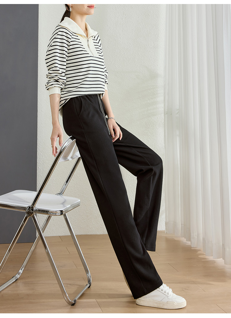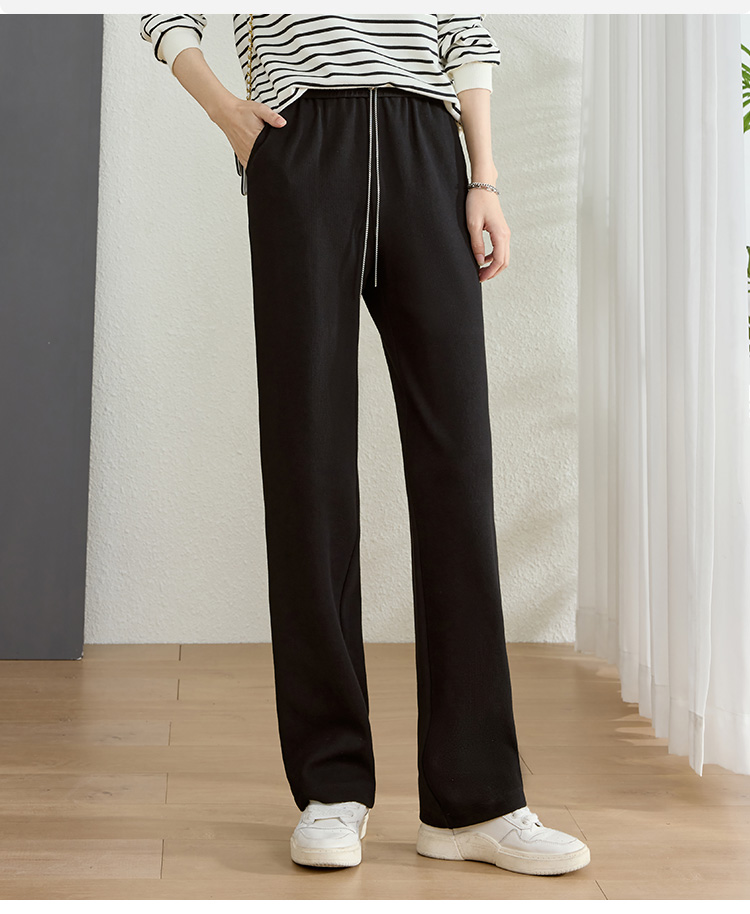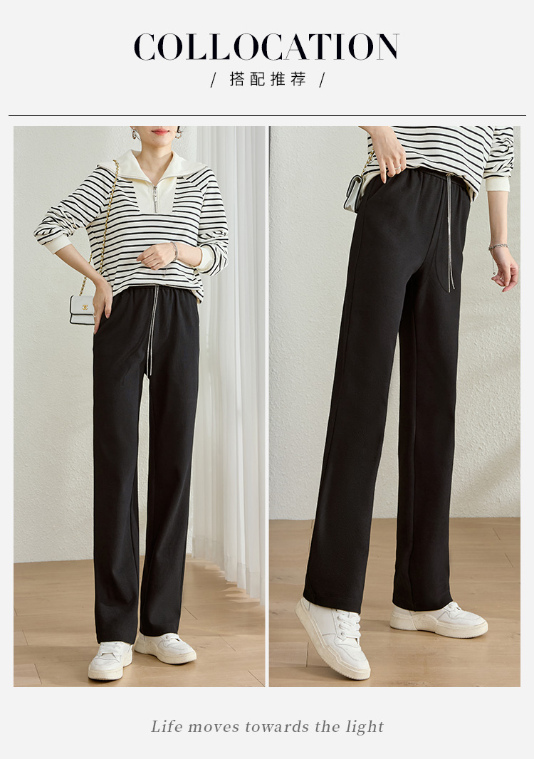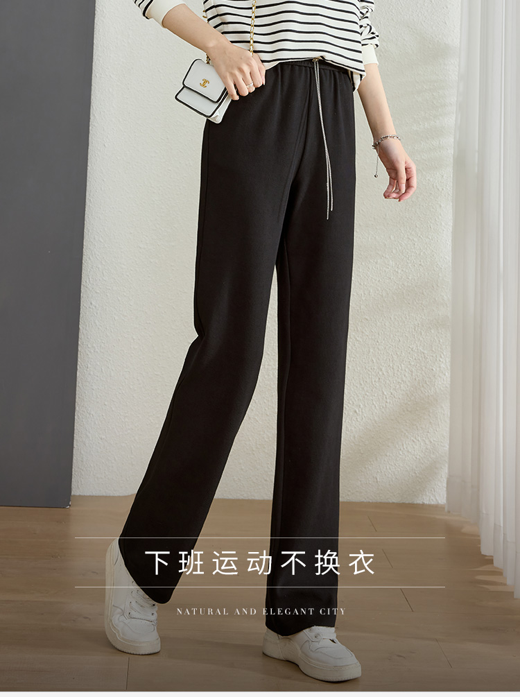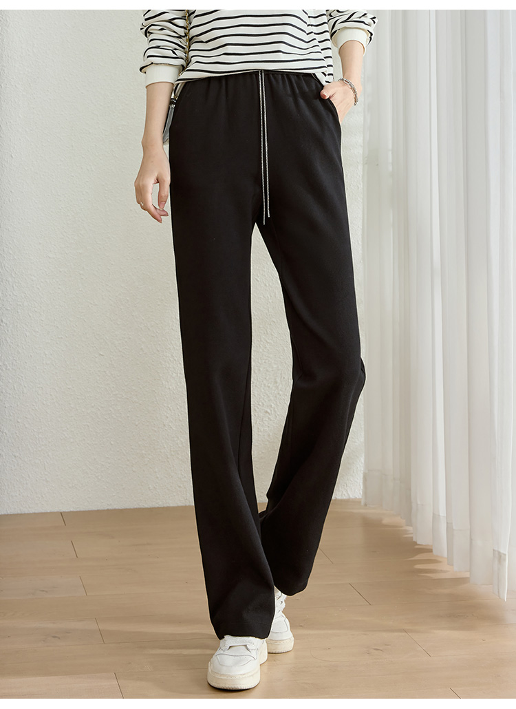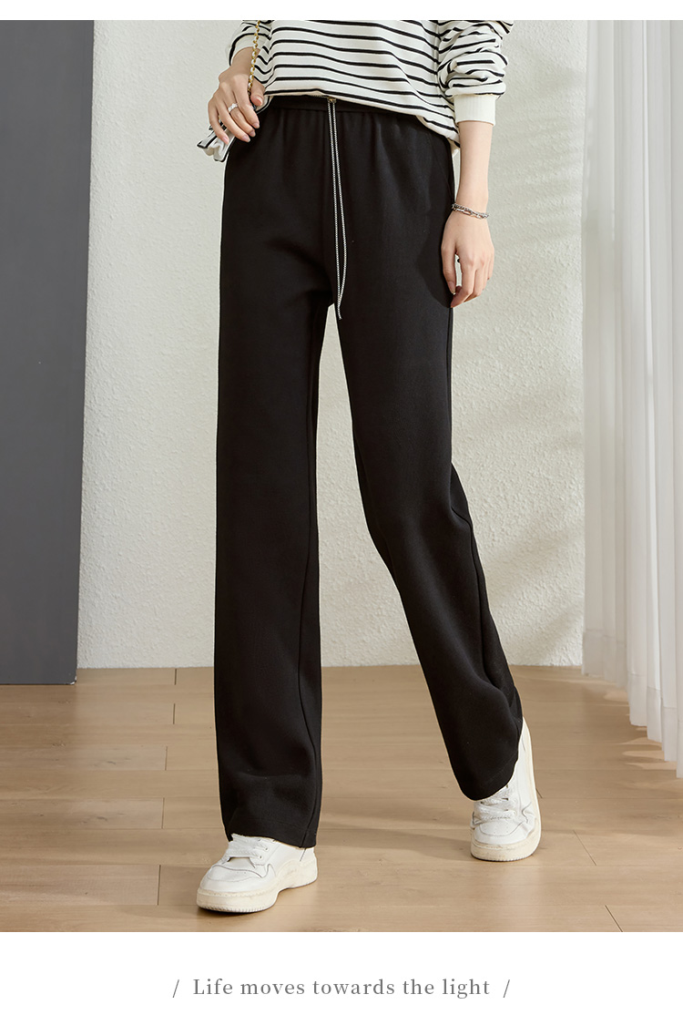 【五折购】熙世界黑色阔腿裤女春秋2025新款高腰垂感运动直筒裤子休闲针织裤