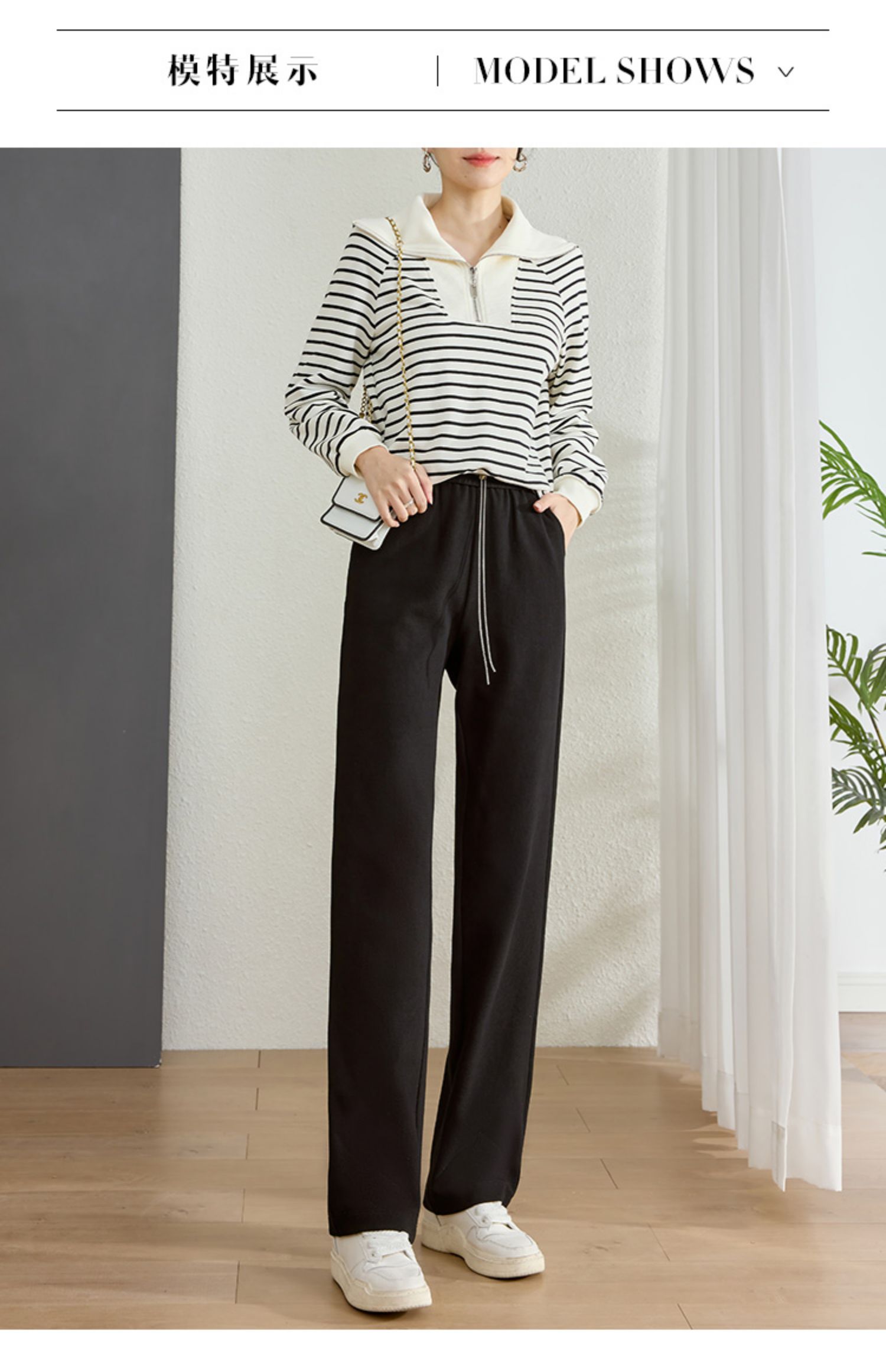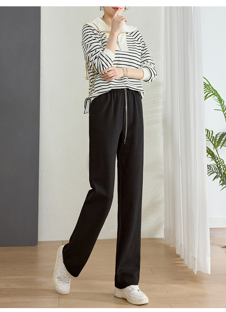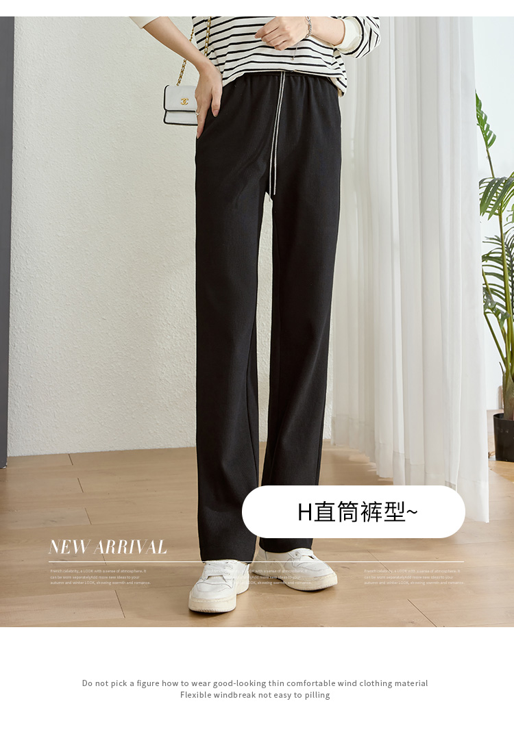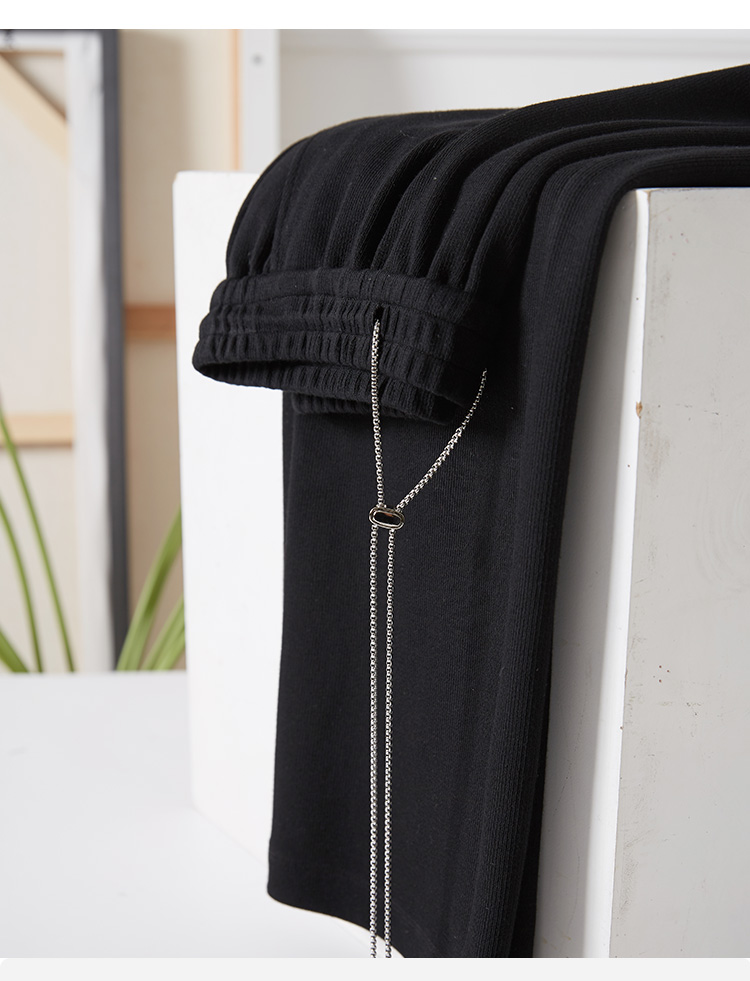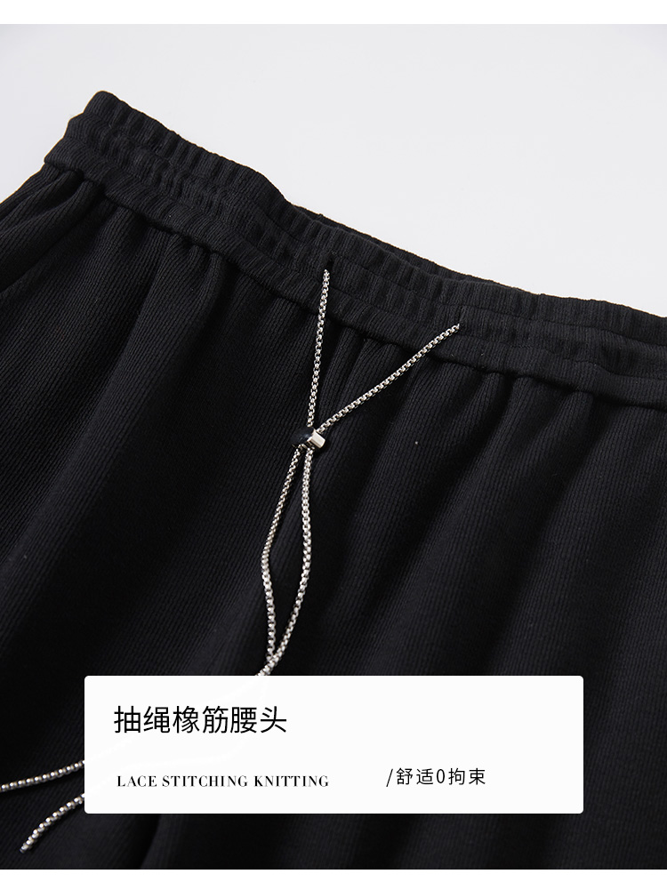 【五折购】熙世界黑色阔腿裤女春秋2025新款高腰垂感运动直筒裤子休闲针织裤