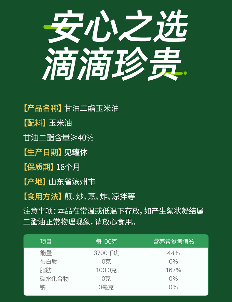 【铁桶】长寿花轻酯甘油二酯食用油40%DAG含量 5L 甘油二酯玉米油家庭装