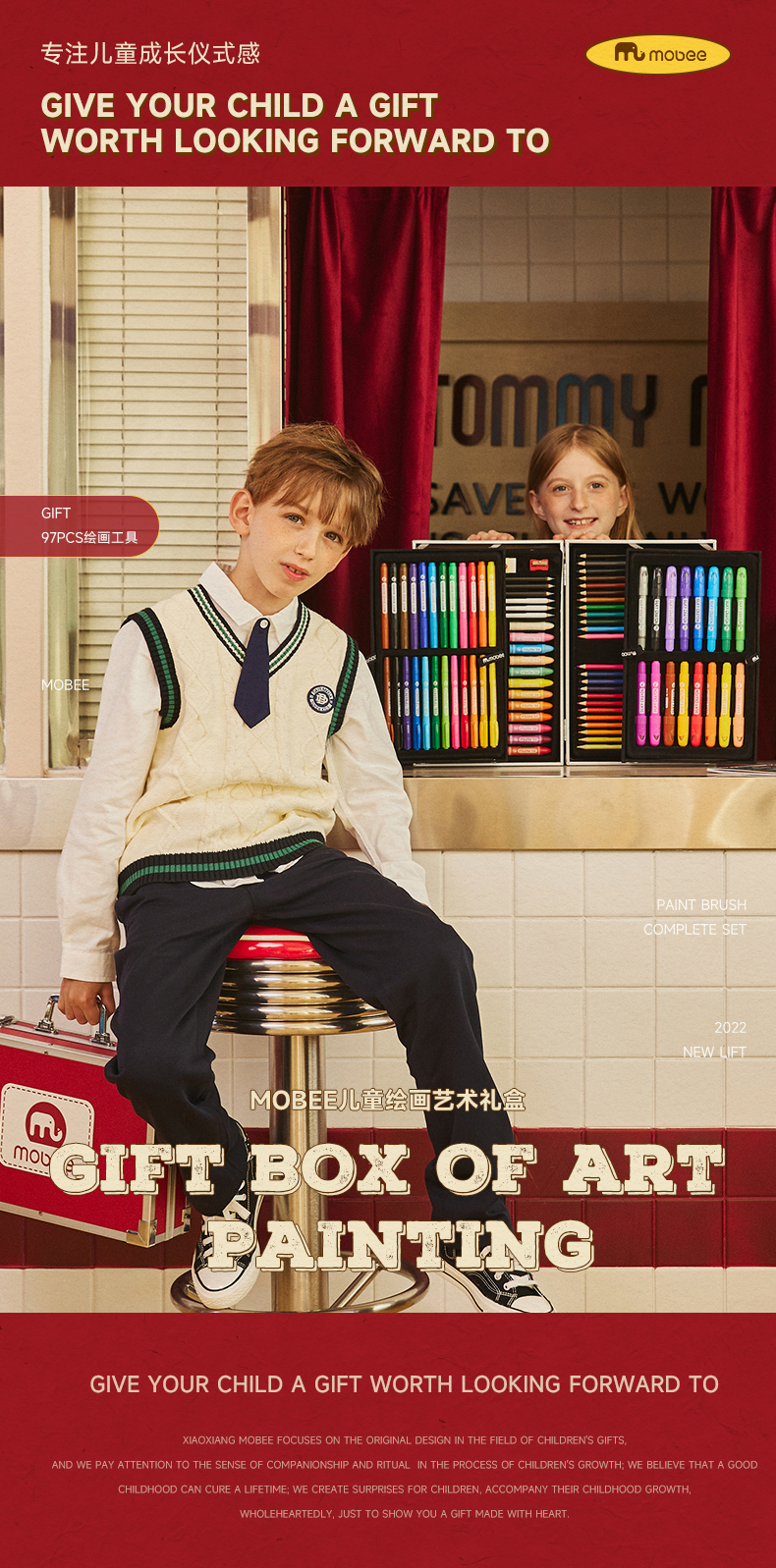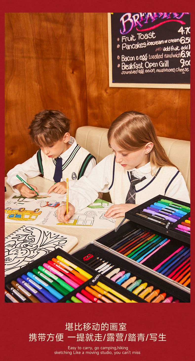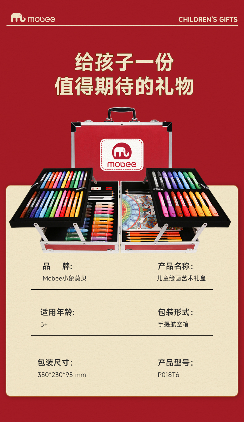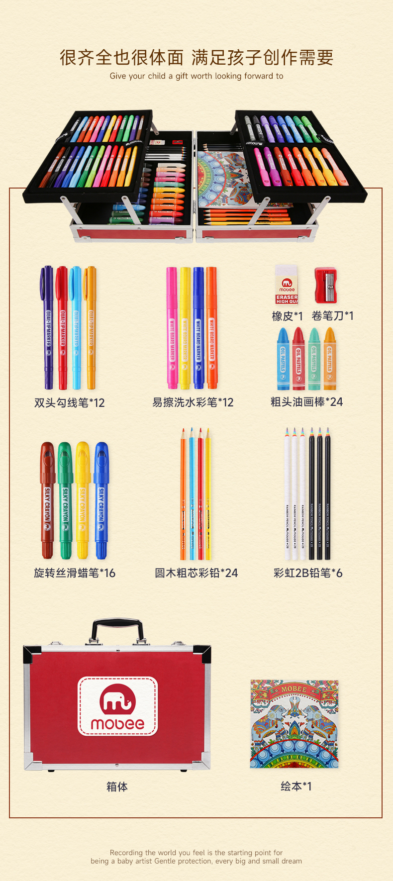 【超全面的移动画室】mobee儿童水彩笔画笔礼盒 4层绘画礼盒 蜡笔画画工具97PCS艺术礼盒 绘画工具玩具礼物