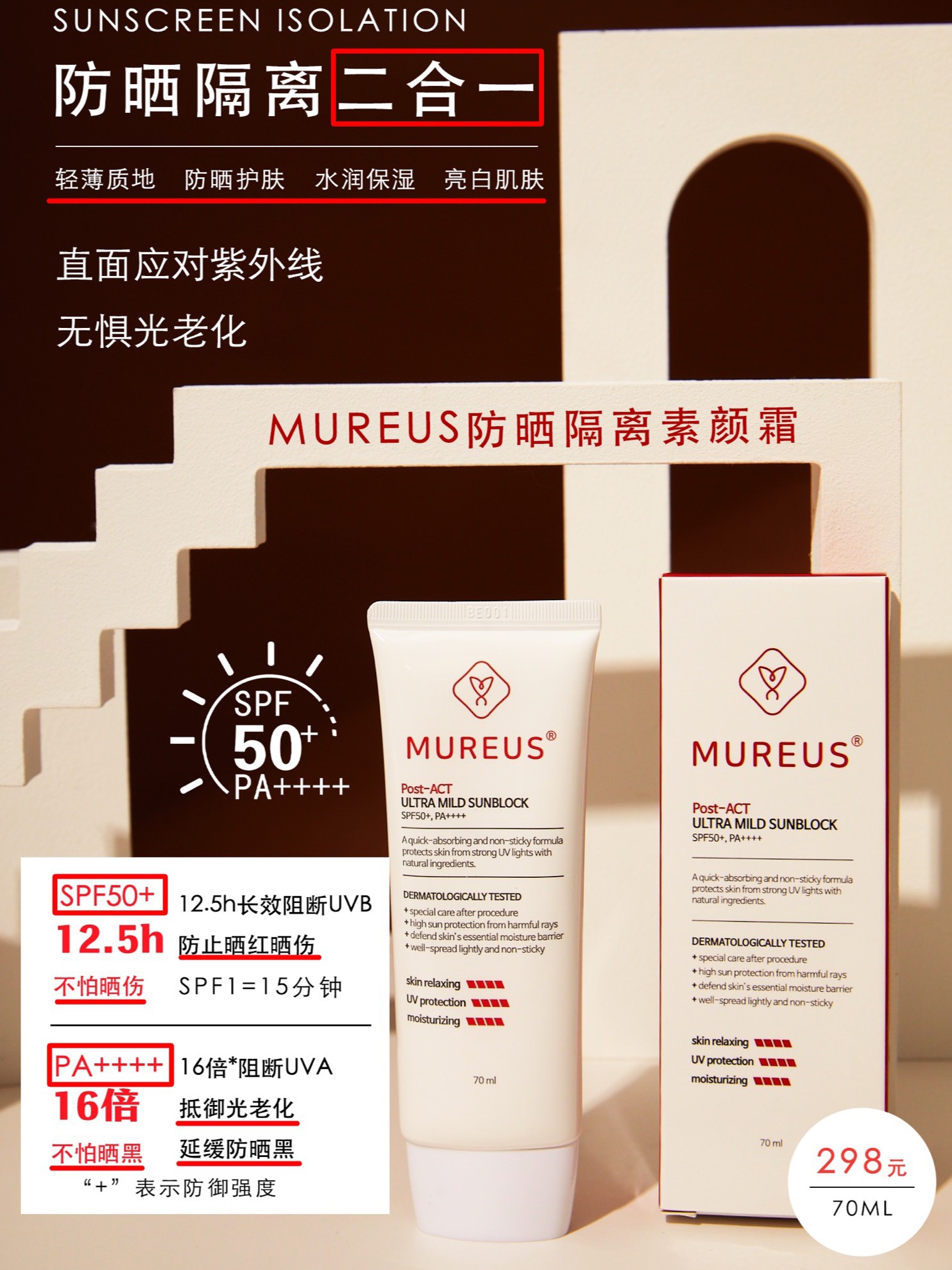 韩国院线MUREUS隔离防晒霜二合一物理高倍轻薄透气水润提亮敏感肌70ml