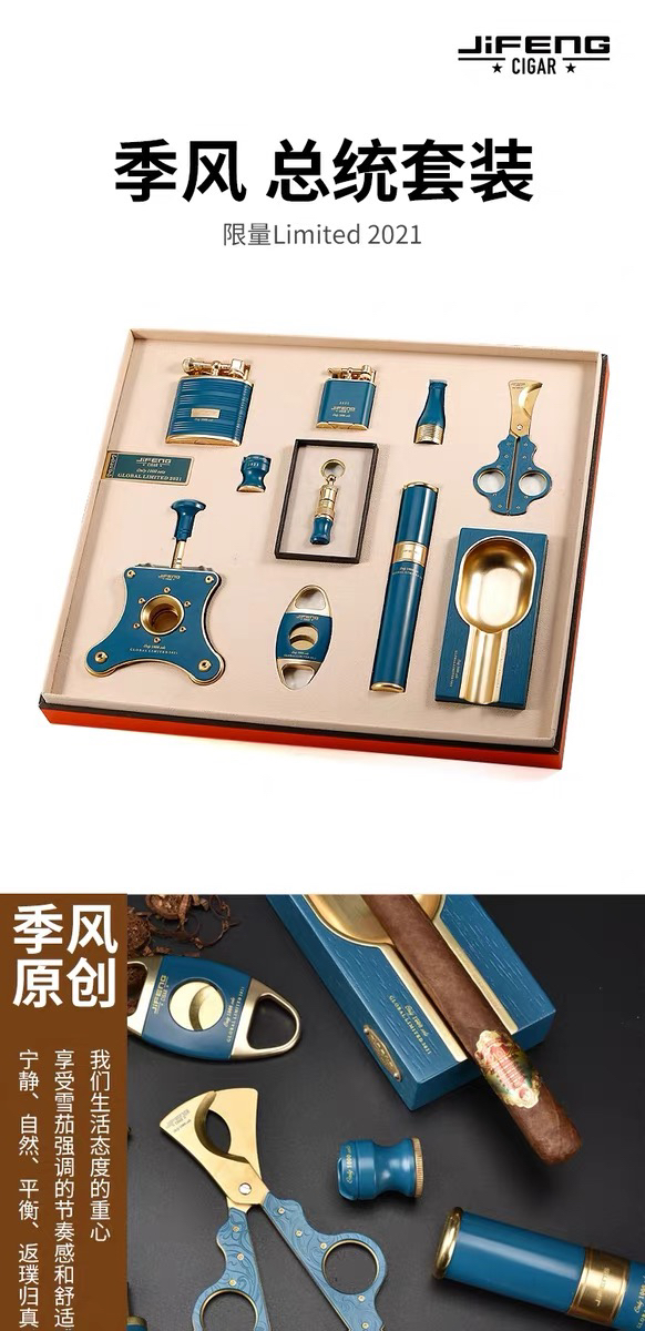 JIFENG季风套装烟灰缸打火机剪刀烟托十件套装