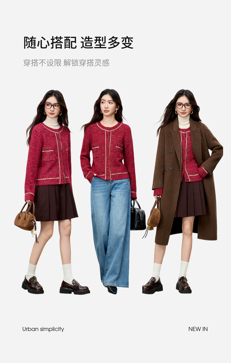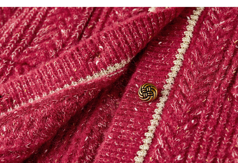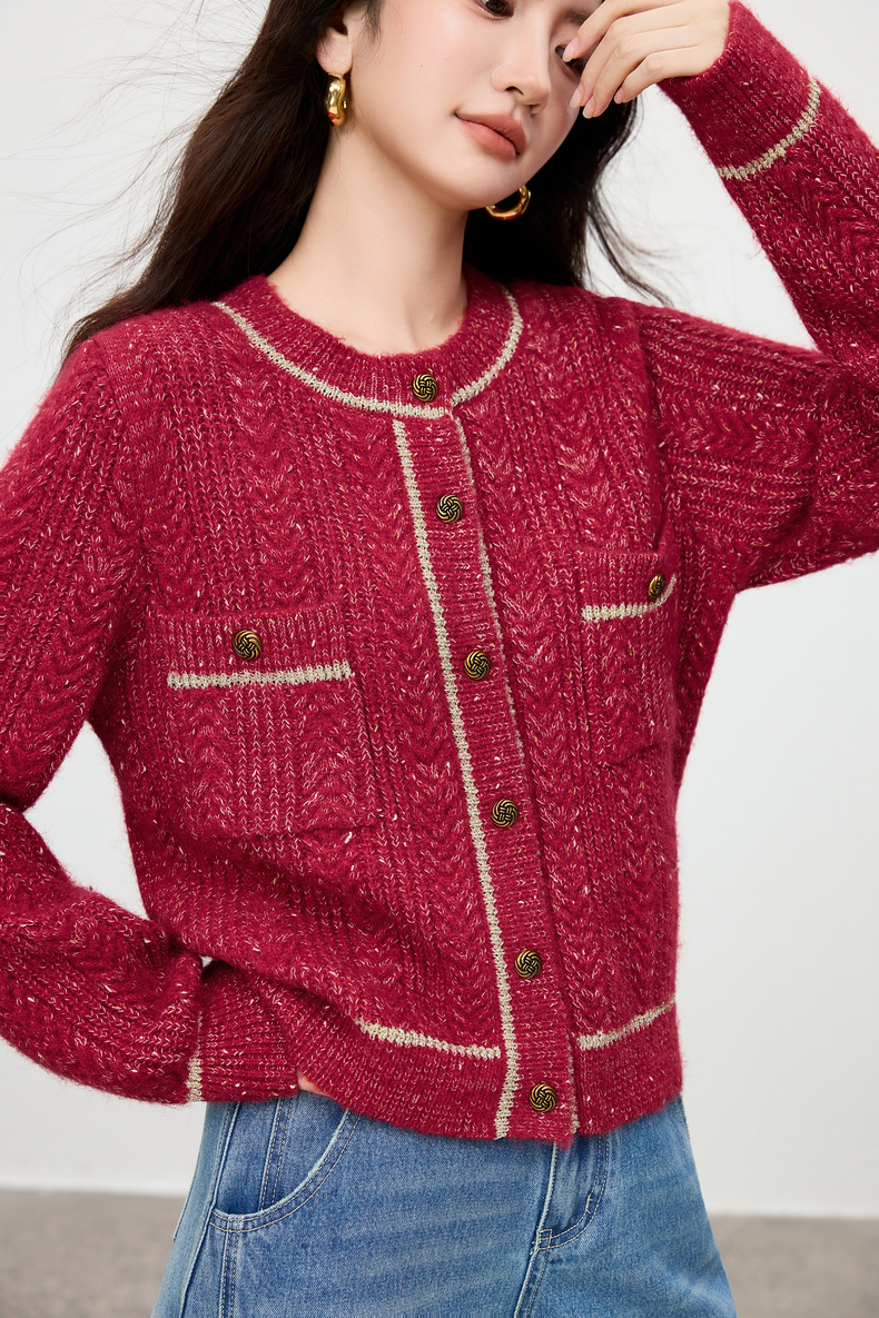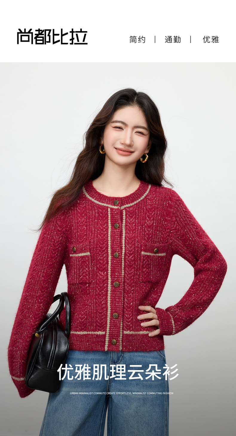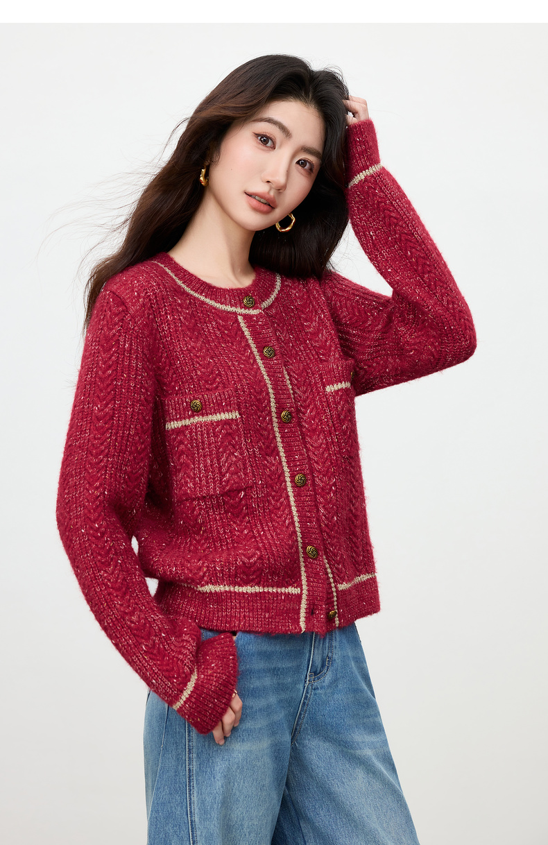 【内购】【云朵衫】优雅通勤撞色细边圆领扭结扣弹力亮丝肌理开衫毛衣-W54EB4148