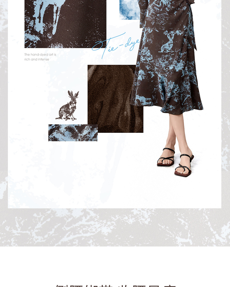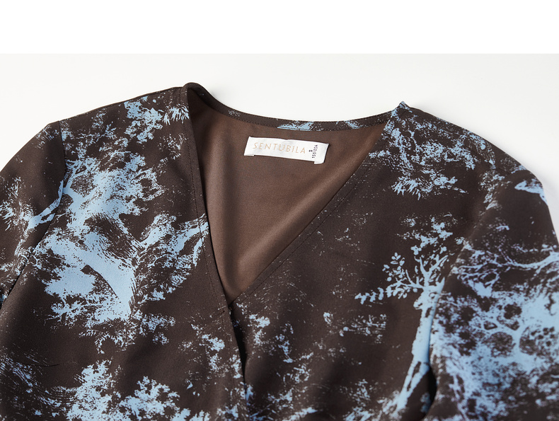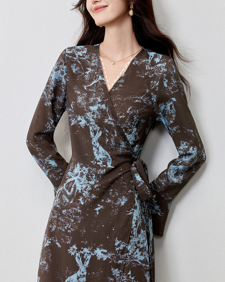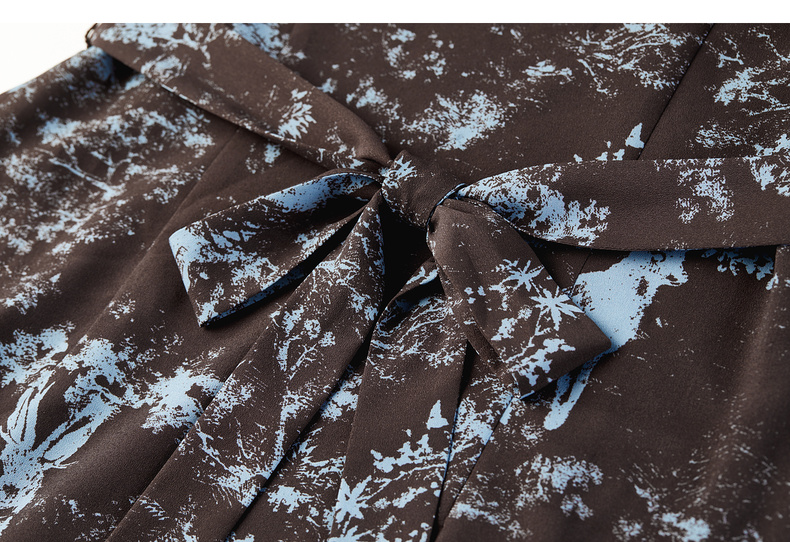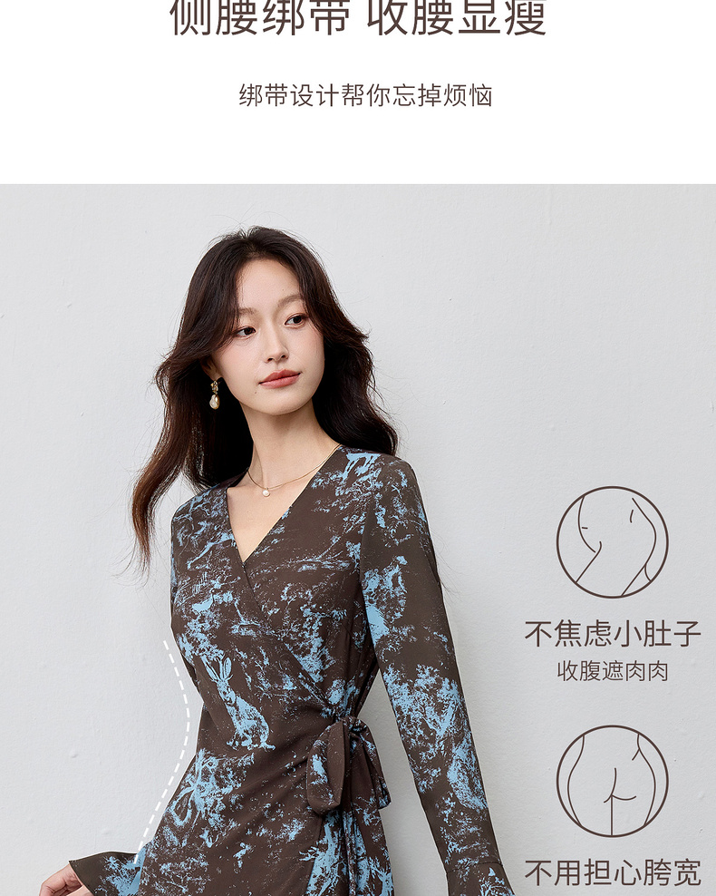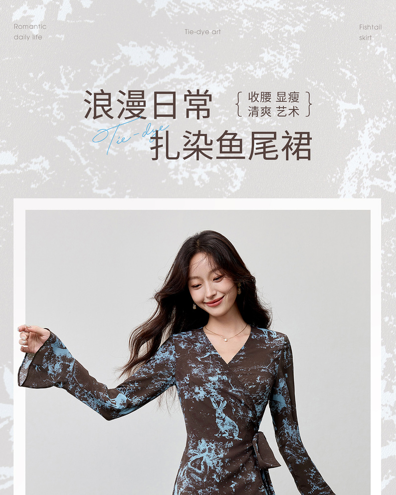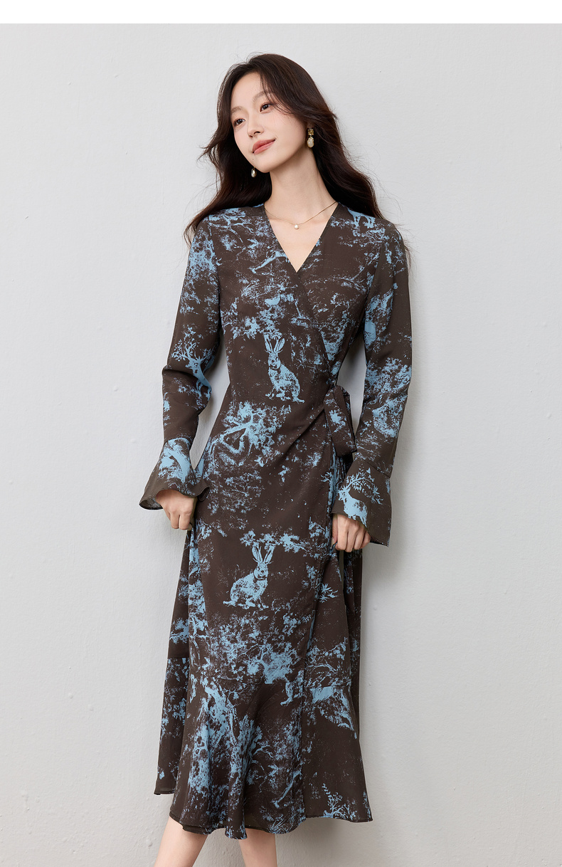 【内购】【一片式系带】优雅通勤V领腰侧系绑带喇叭袖收腰雪纺鱼尾连衣裙-Q53LF2805