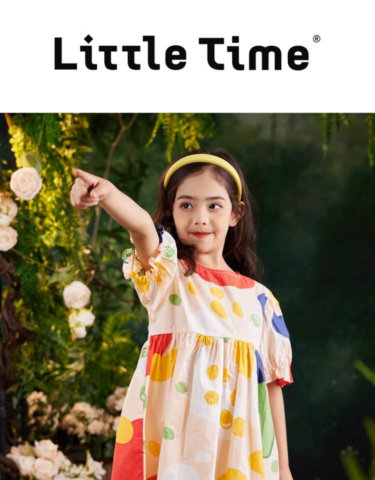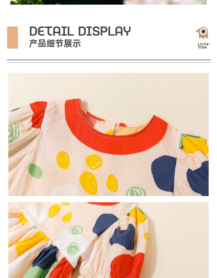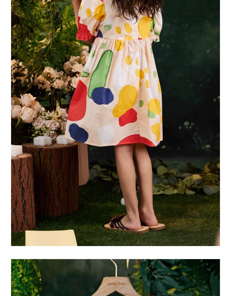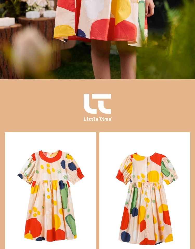 littletime女童连衣裙2023夏季新款不规则圆点印花连衣裙儿童裙子