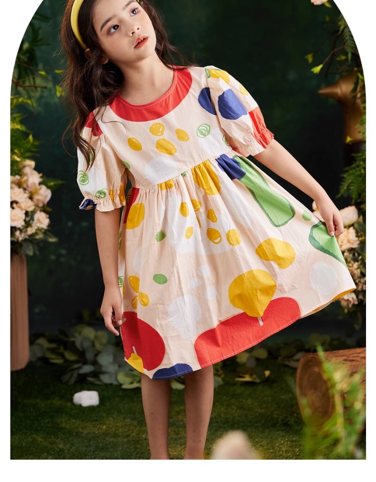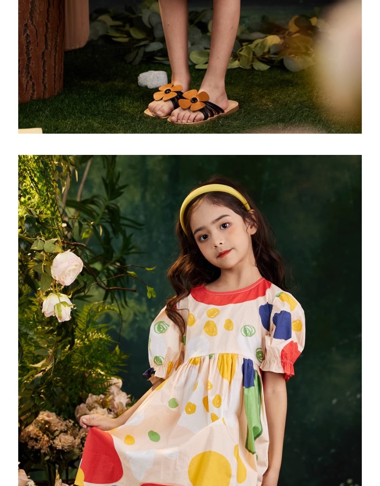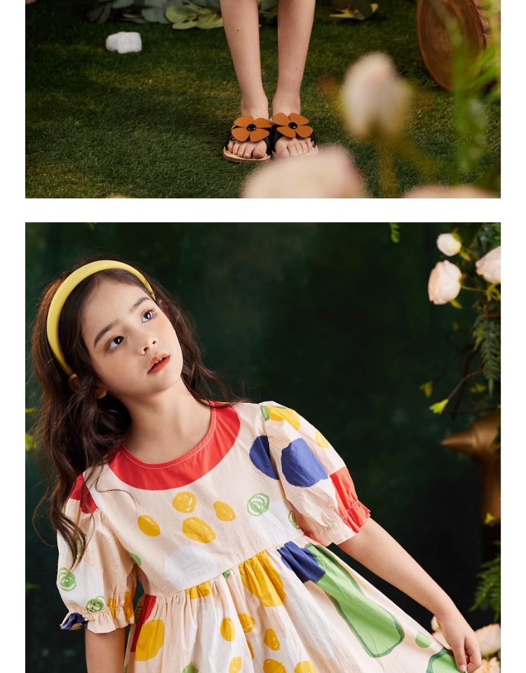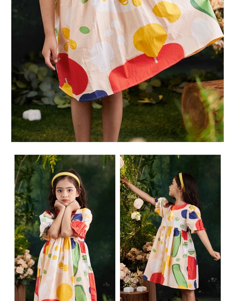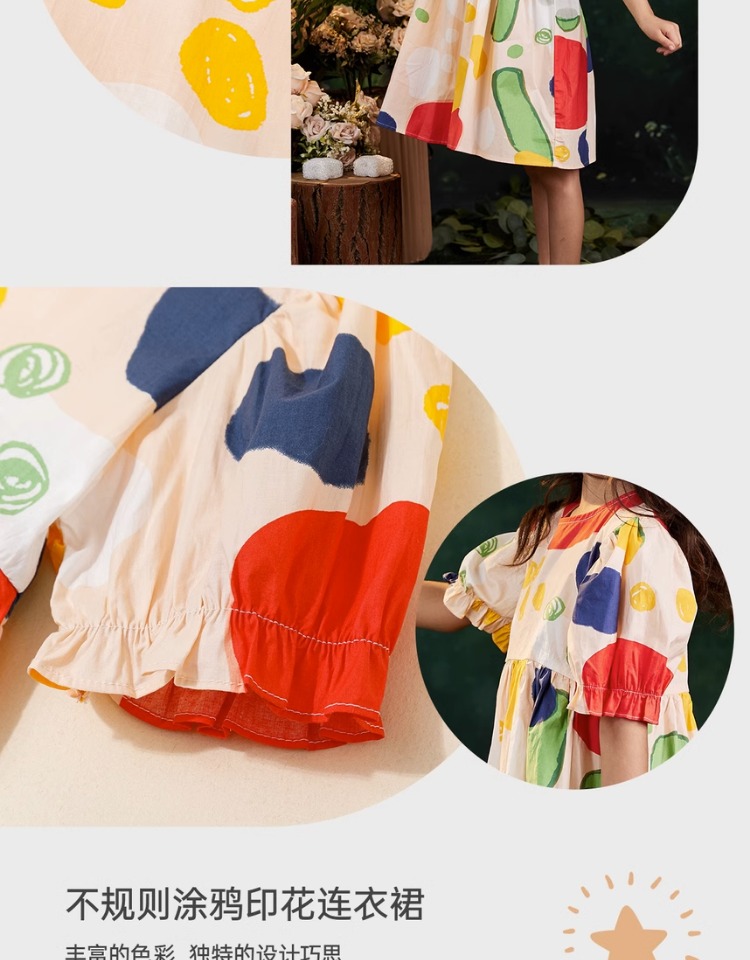 littletime女童连衣裙2023夏季新款不规则圆点印花连衣裙儿童裙子