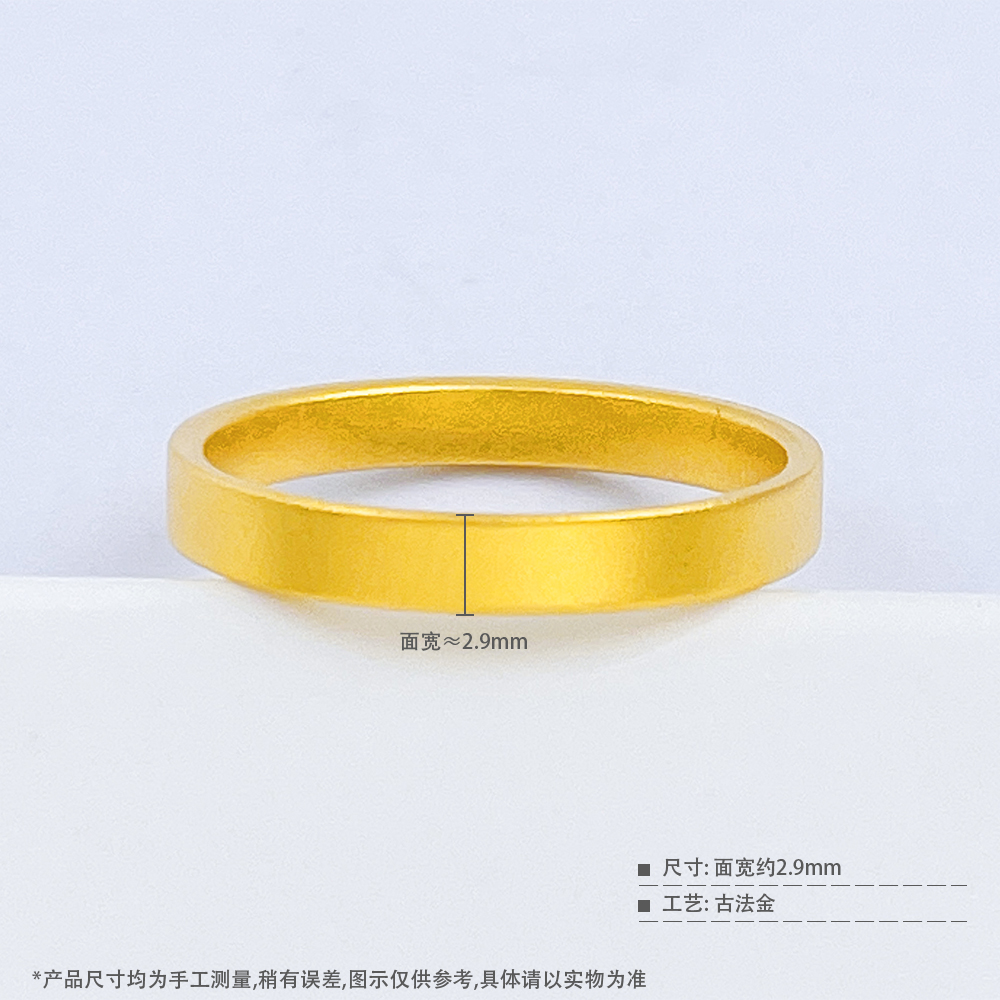【限时克减150元】足金999.9 古法实心光圈戒指素圈戒指固口圈戒(面宽约2.7-3.1mm)光面四方戒指(AIGFJZ00005-4)(预售产品下单后不退款不退货不换货不补差价