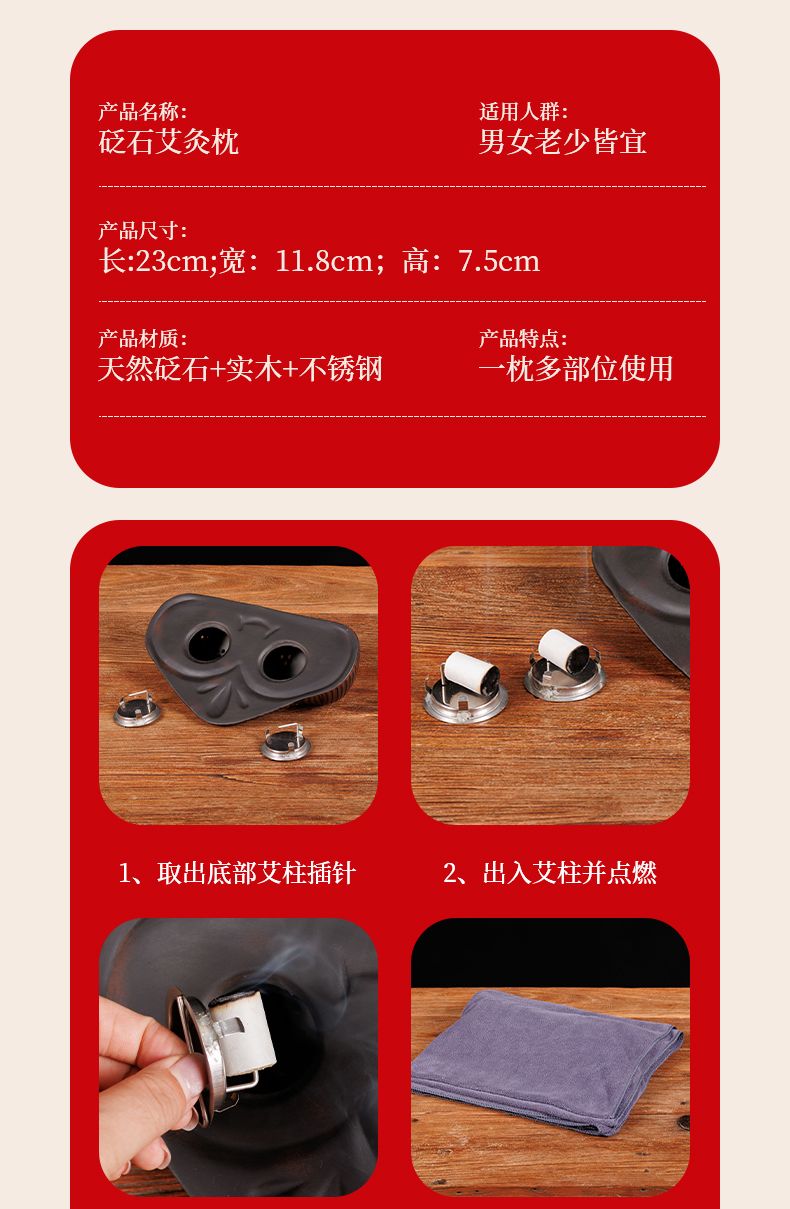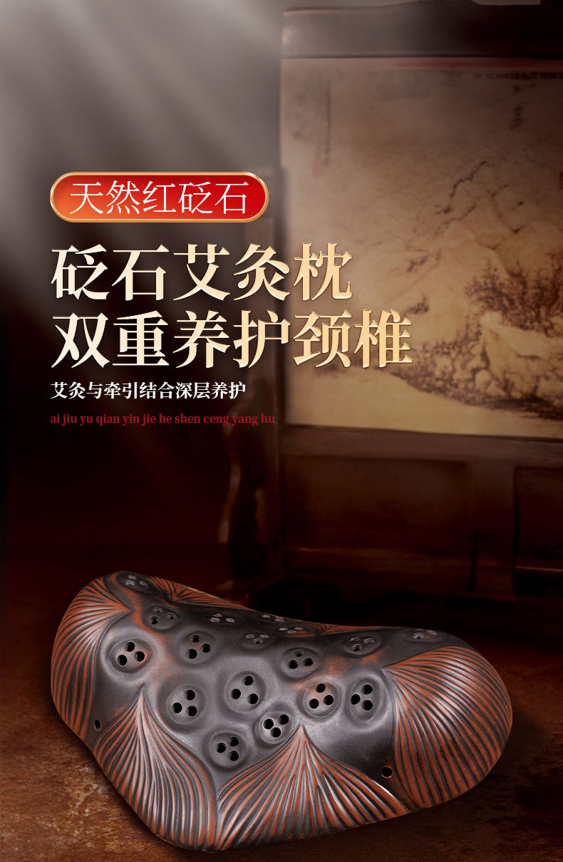 新款【红砭石艾灸枕】砭石艾灸枕头红砭石枕艾灸罐热敷理疗仪颈椎枕随身灸家用艾炙器具盒养生馆