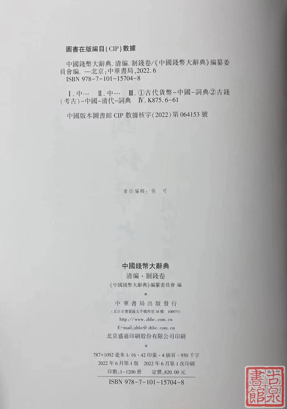 中国钱币大辞典-清制钱卷 主编签名本
