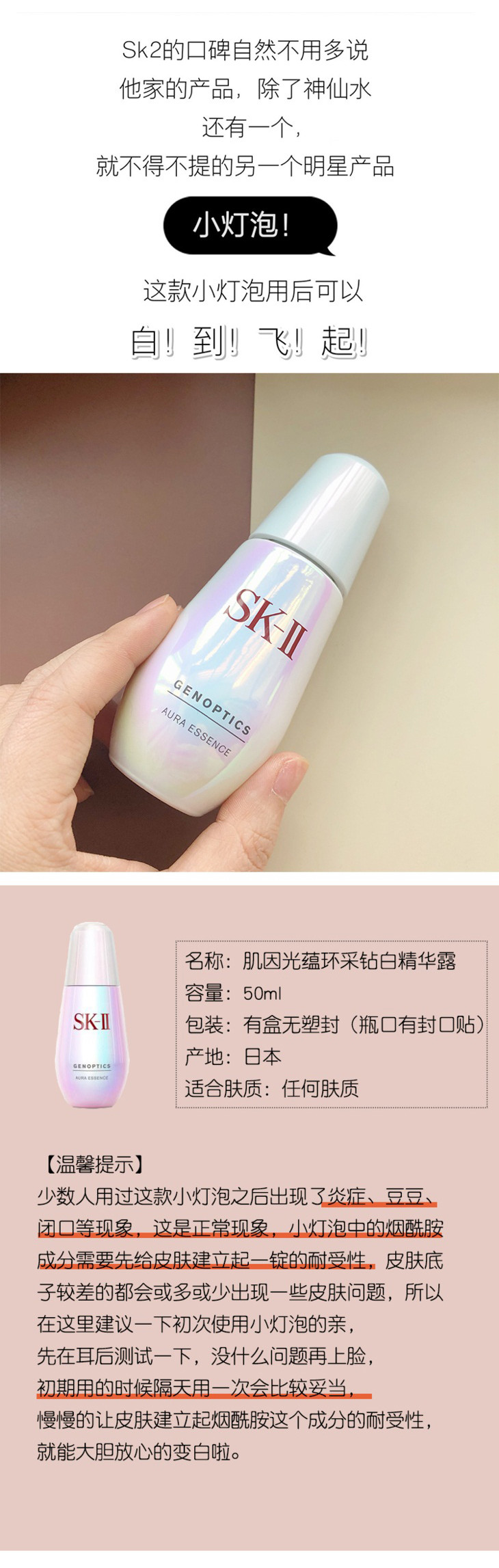 [[专柜硬货] SK-II sk2小灯泡skll 面部祛BAN肌因光蕴环采钻白精华 保湿DAN斑提亮肤色 50ml