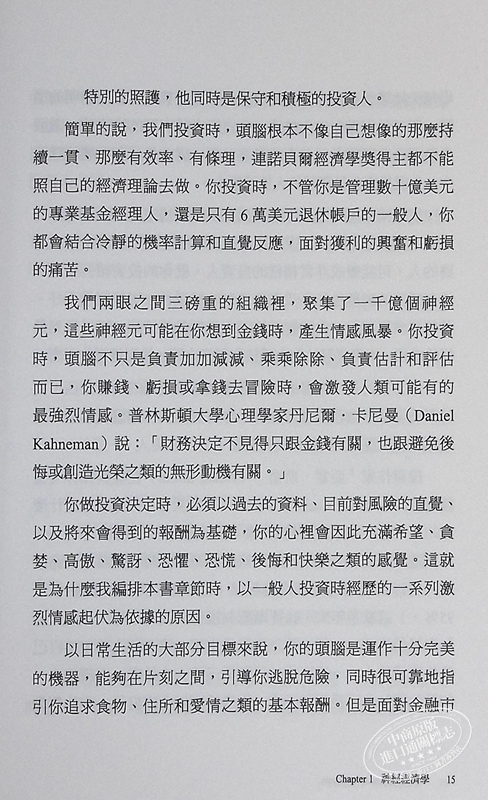 「我怎麼可能這麼笨?」要是你從來沒有這樣氣急敗壞的自怨自艾,你就不是投資人。人類所有行為中,可能沒有一種行為像投資這樣,讓這麼多聰明人覺得自己這麼笨。這就是為什麼我下定決心,要用投資人可以了解的說法,說明你做和金錢有關的決定時,腦海裡到底在玩什麼花樣的原因。-傑森.茲威格