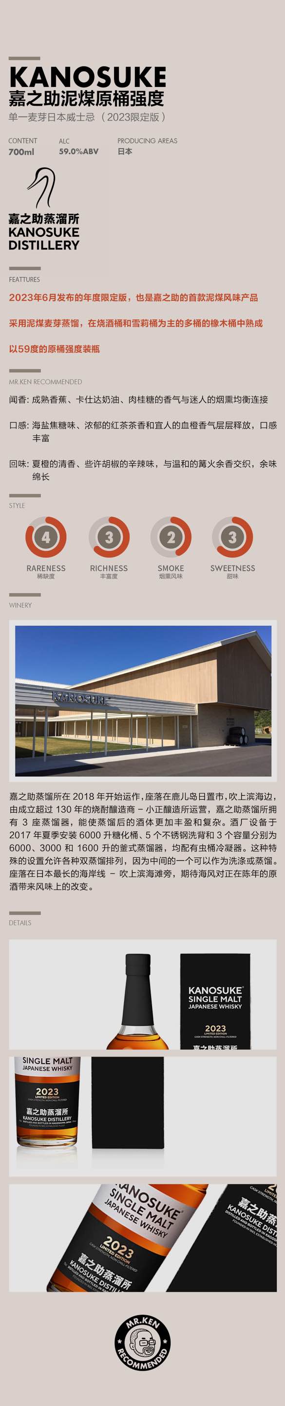 嘉之助(Kanosuke)泥煤原桶强度单一麦芽日本威士忌 (2023限定版)