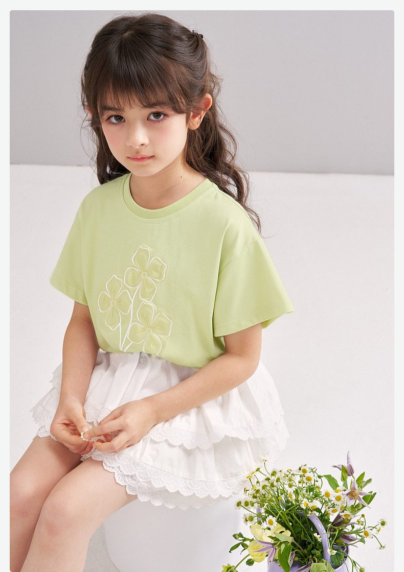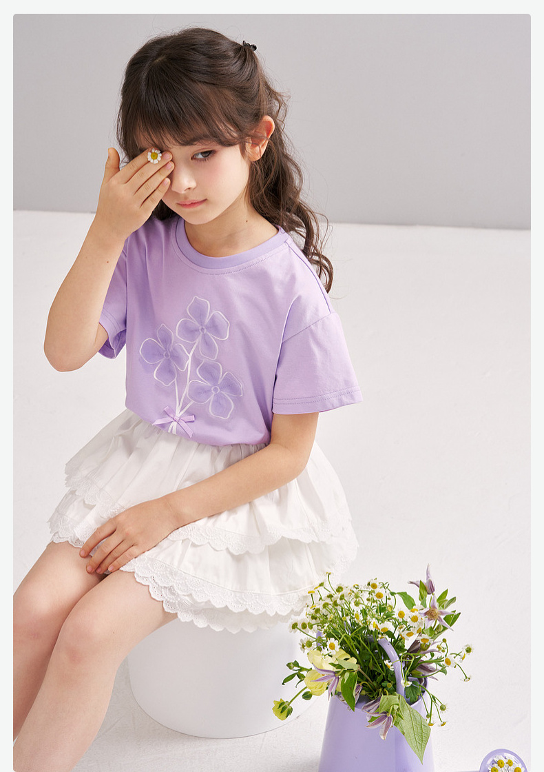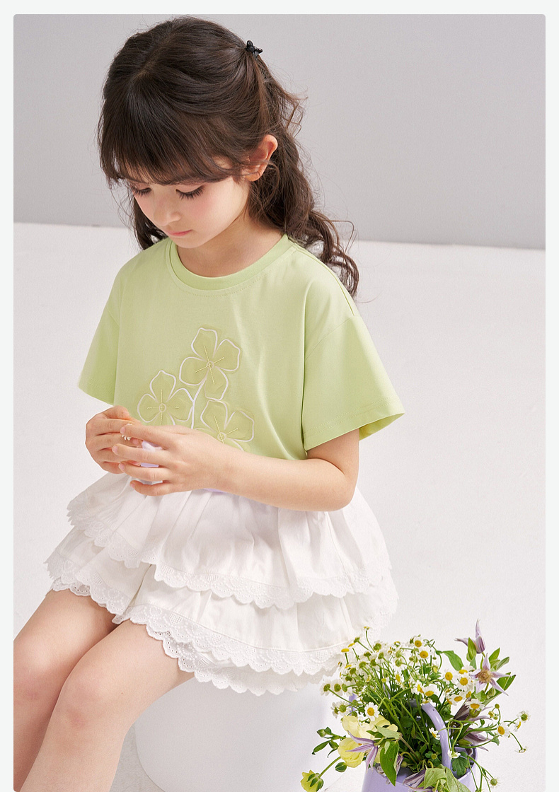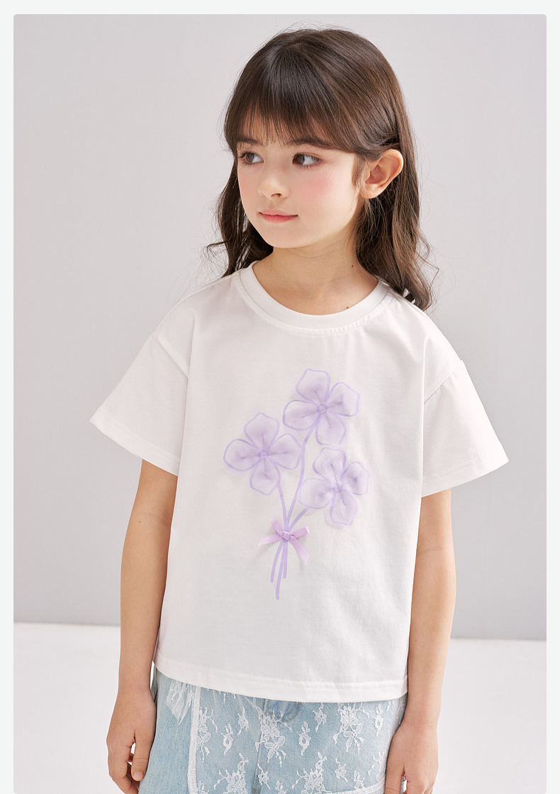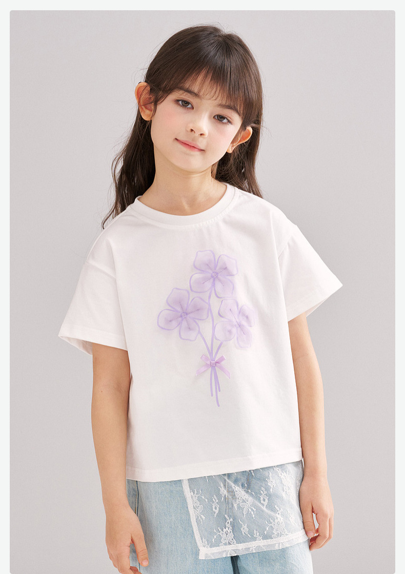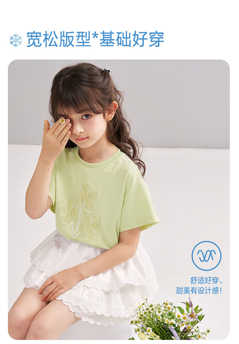 笛莎/Deesha 【松饼熊】2026年夏季新款女童索罗那原纱防晒凉感短袖T恤