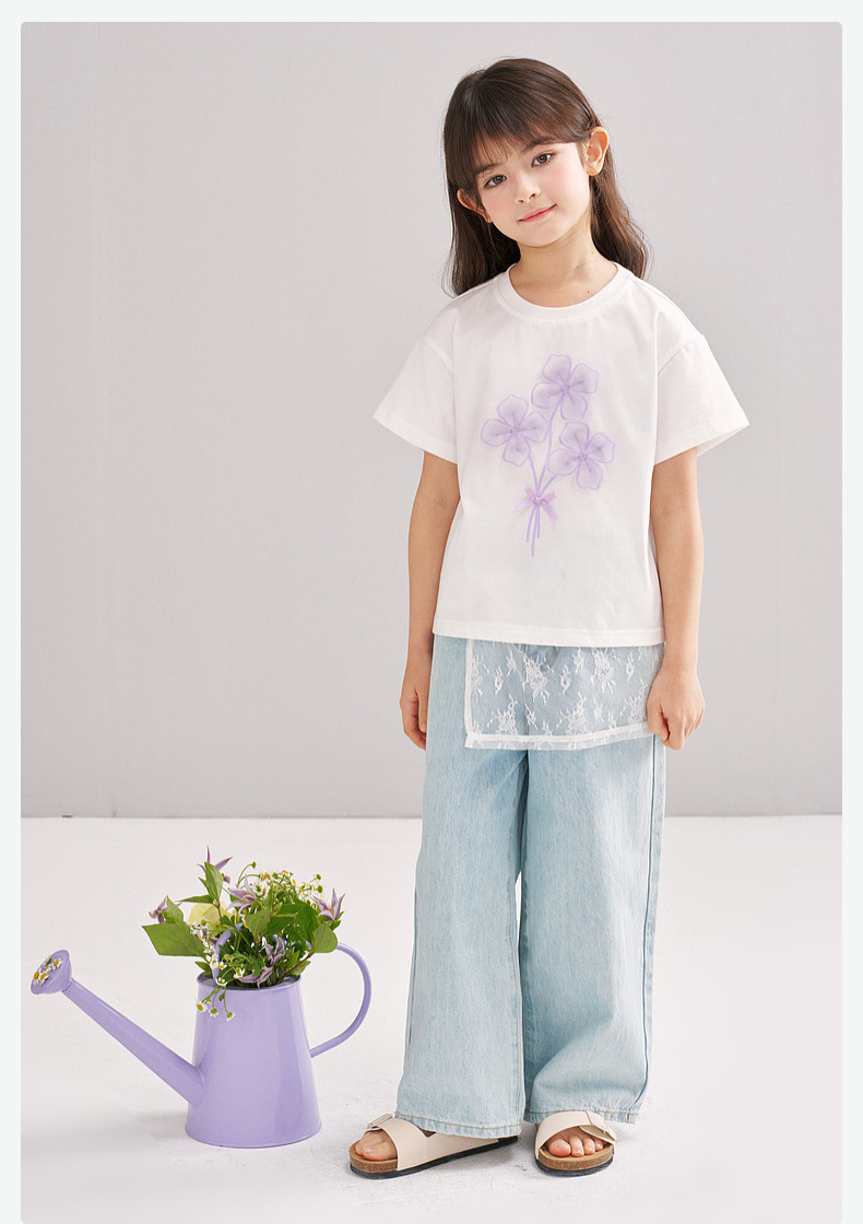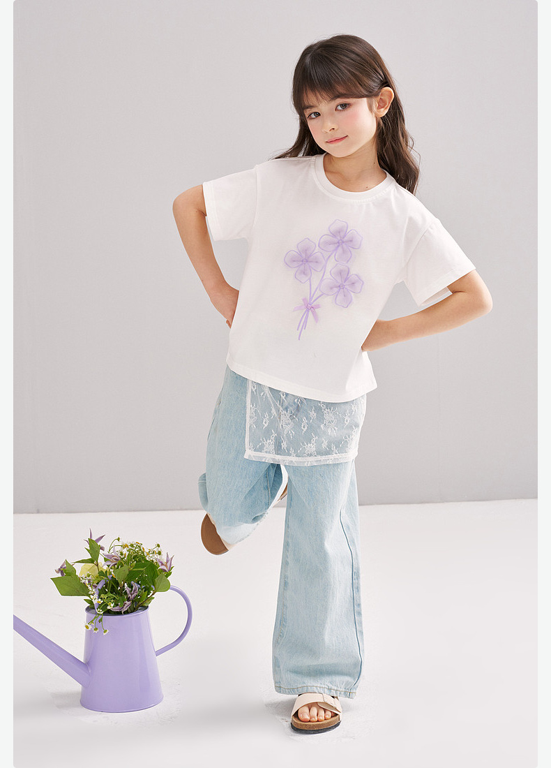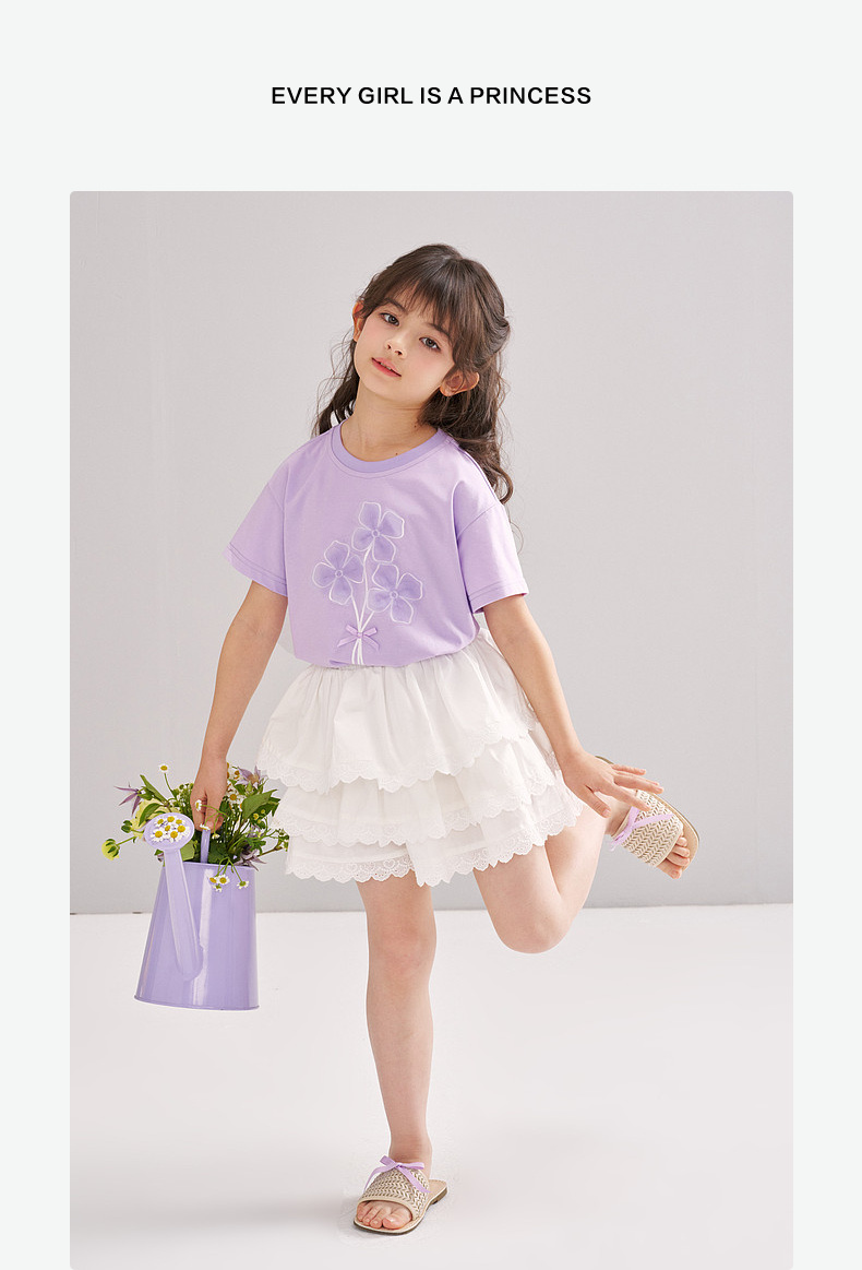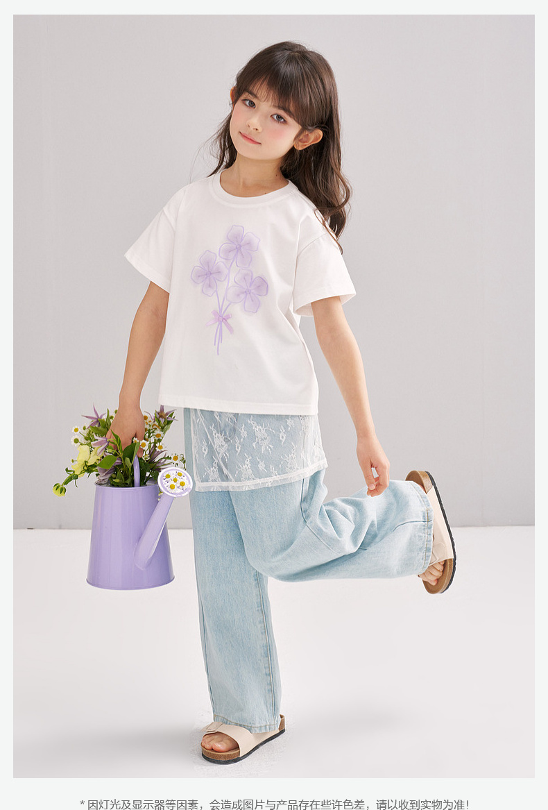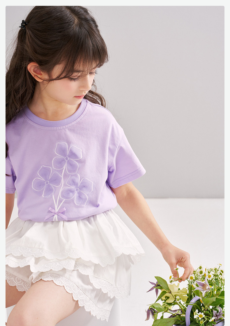 笛莎/Deesha 【松饼熊】2026年夏季新款女童索罗那原纱防晒凉感短袖T恤