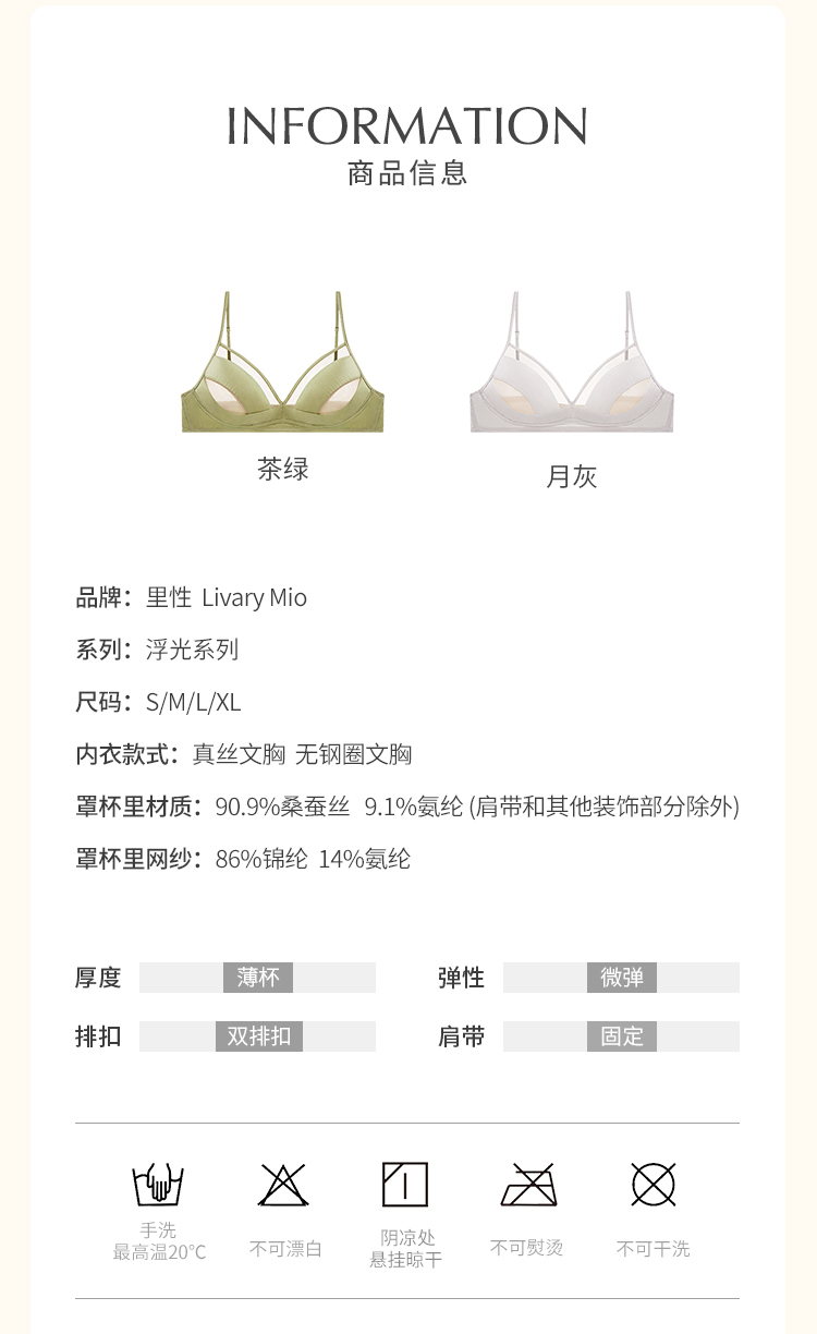 里性 LIVARY MIO 浮光-Gloss 真丝拼接网纱内衣女薄款无钢圈文胸