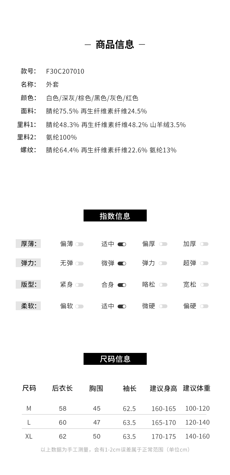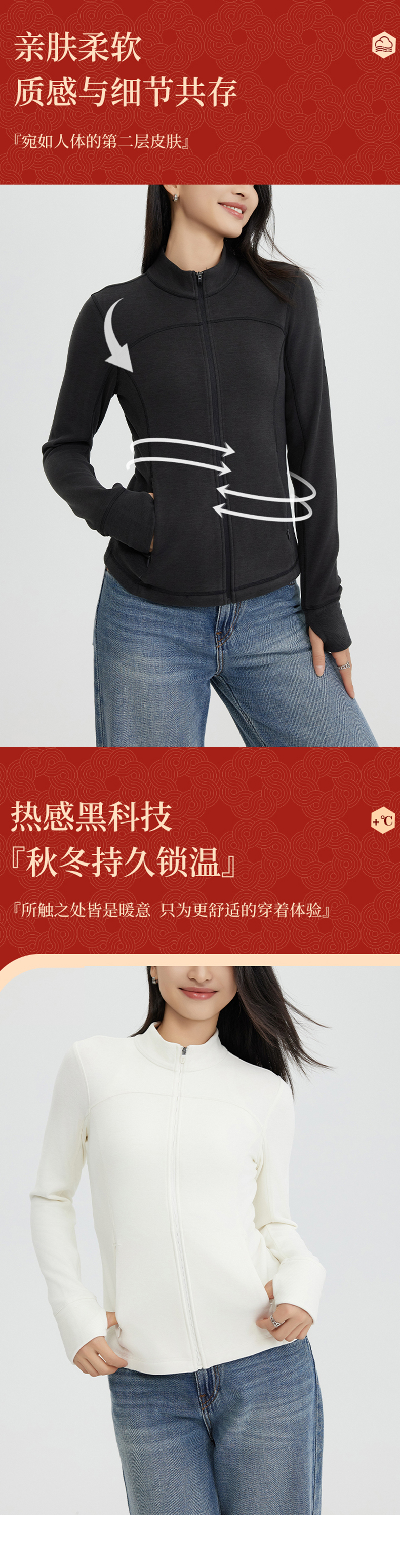 【黑科技锁温】阿菁娜双色羊绒时尚修身拉链微塑形外套F30C207010