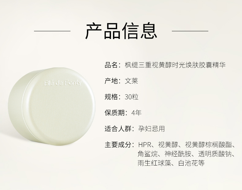 文莱进口 枫缇 三重视黄醇时光焕肤胶囊精华 0.3ml*30粒
