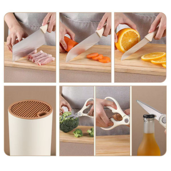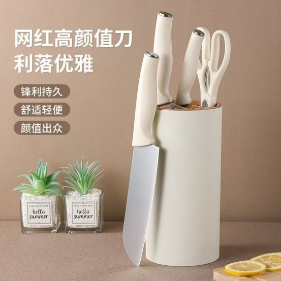 👍【治愈系厨房美学 ✅姐妹们!挖到宝了!!📣这套让厨房颜值飙升的带刀座高颜值刀具五件套彻底治愈🌈了我的烹饪焦虑 😘每天最期待的就是打开刀座的瞬间,连切菜都变成了一种享受~🥰