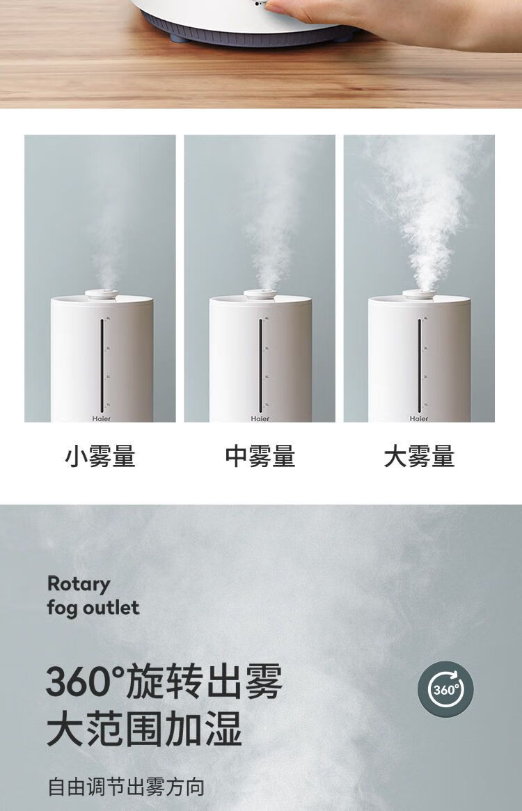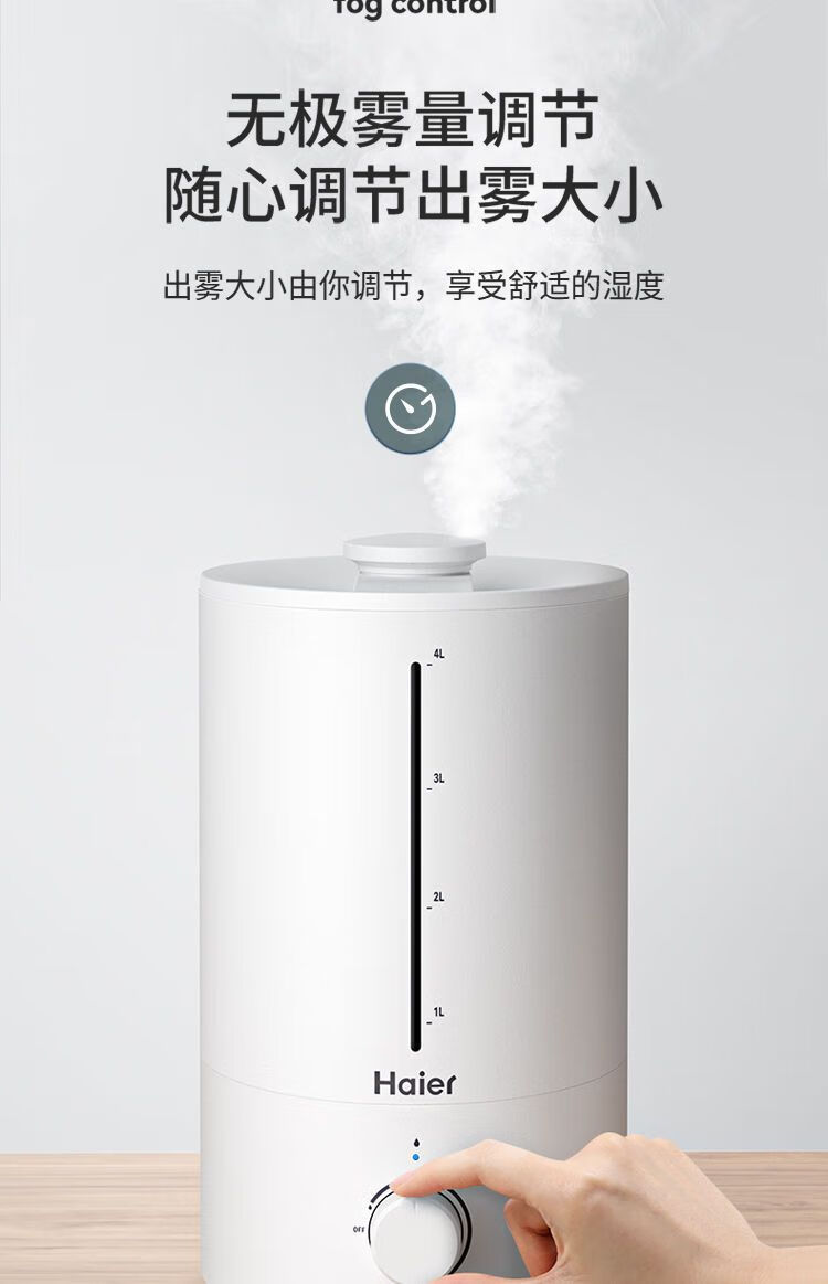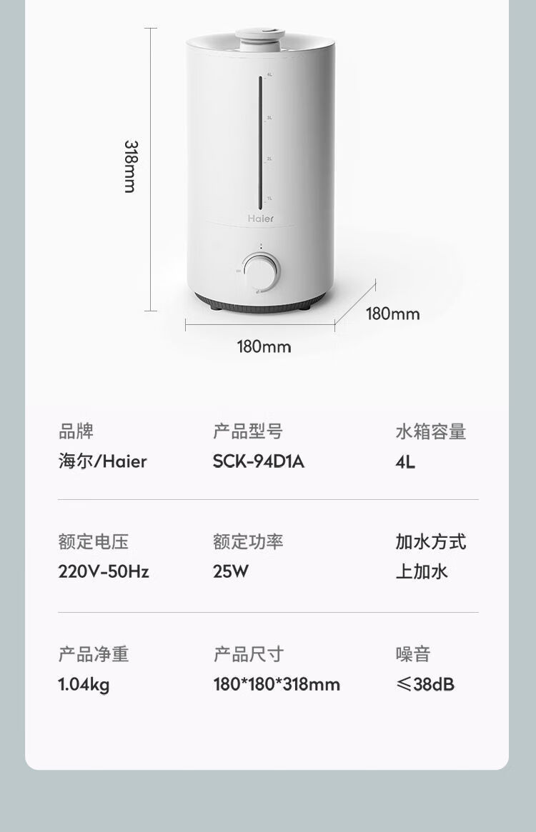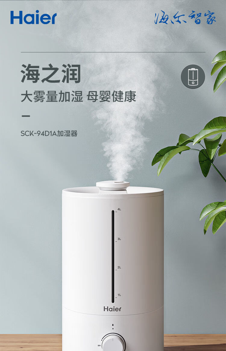 海尔加湿器卧室家用轻音孕妇婴儿空气净化香薰大喷雾办公室增湿器94D1A