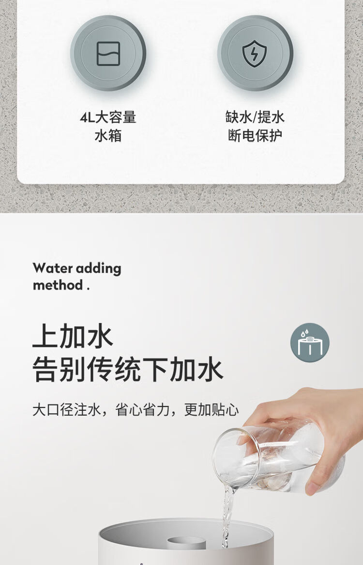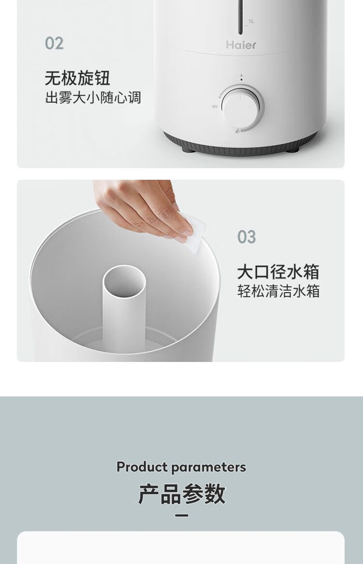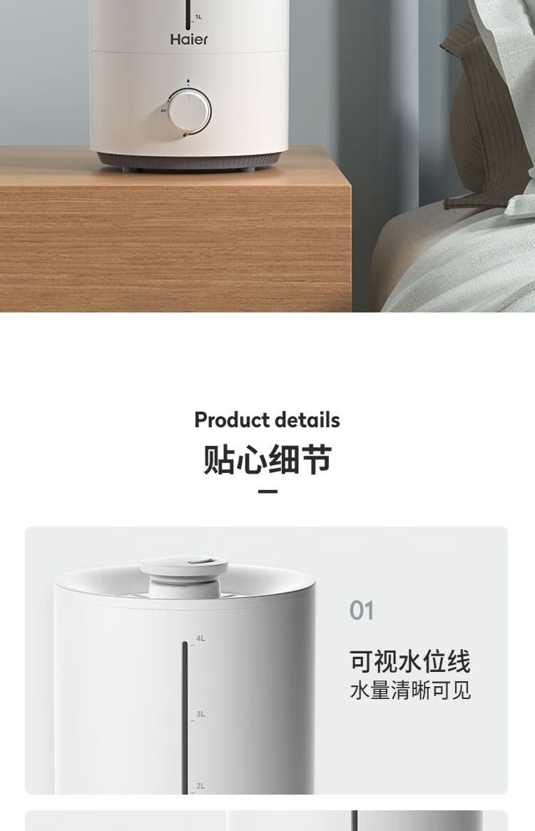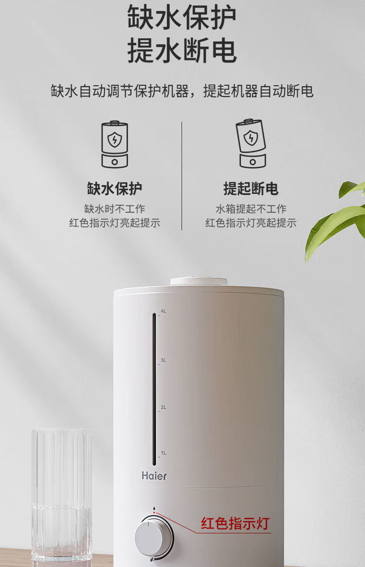 海尔加湿器卧室家用轻音孕妇婴儿空气净化香薰大喷雾办公室增湿器94D1A