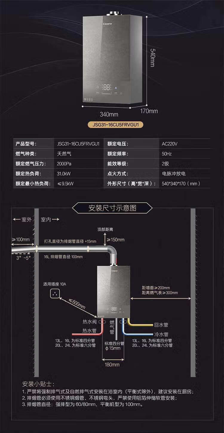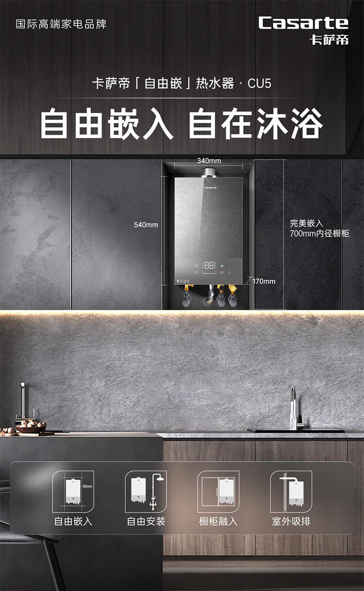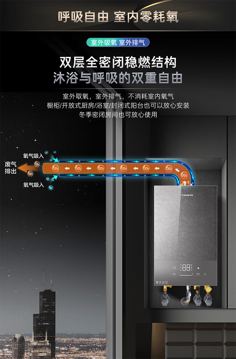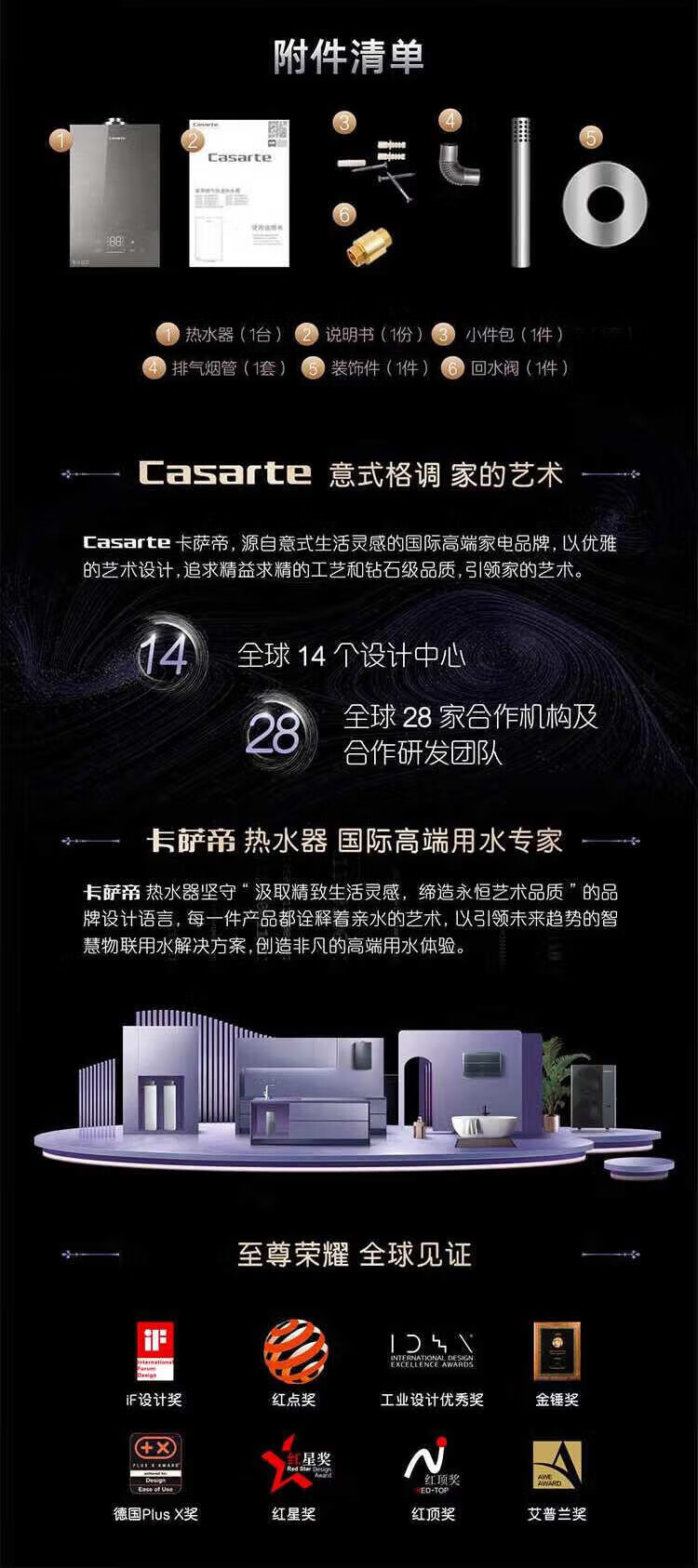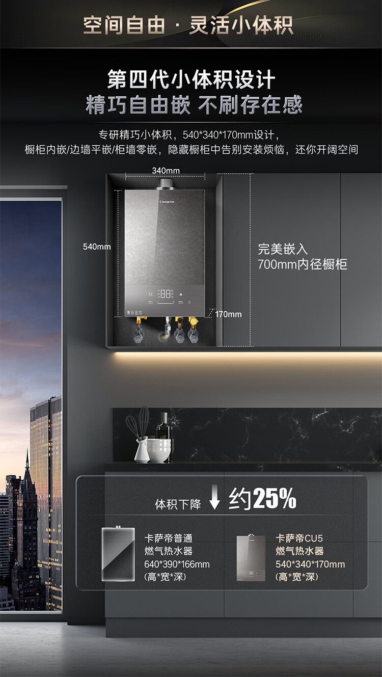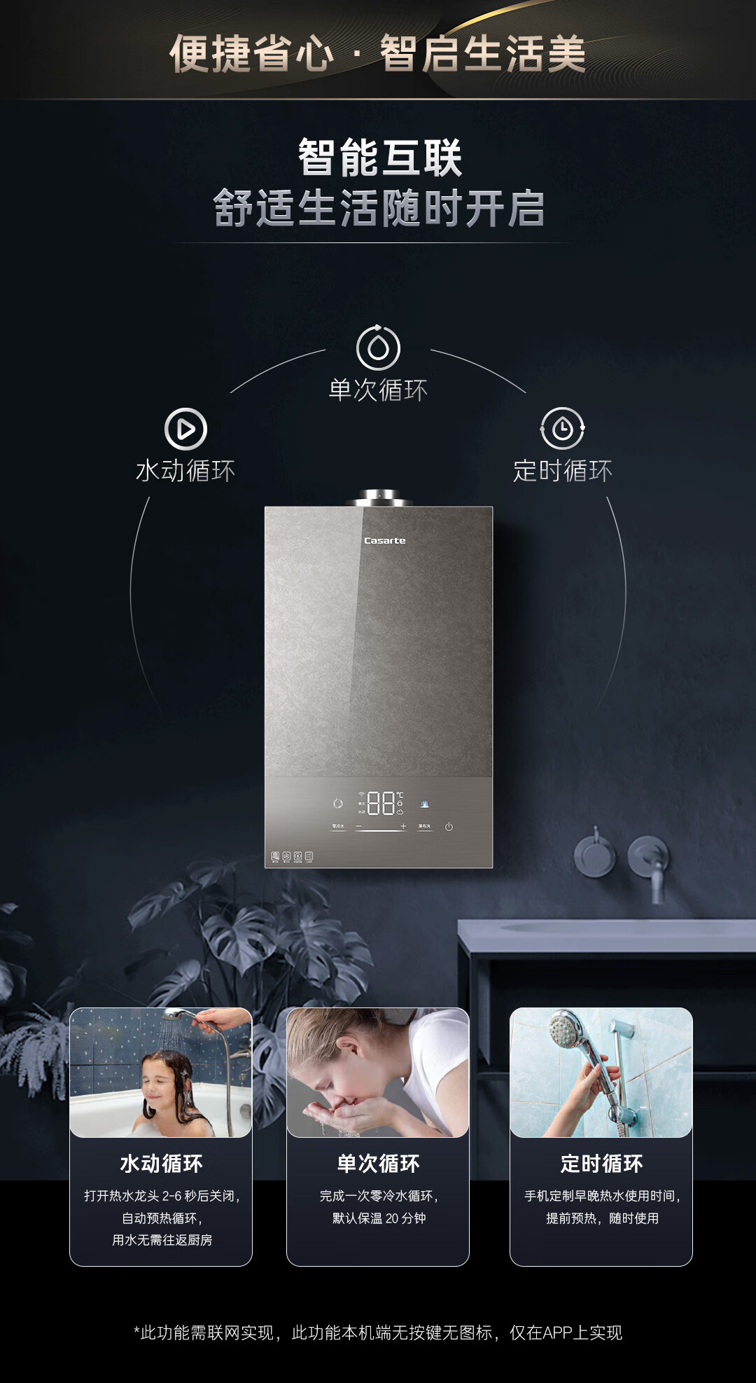 卡萨帝(Casarte)16升燃气热水器天然气【CU5】三管零冷水 全隐藏安装 双驱水伺服 静音JSG31-16CU5FRVGU1国补补贴