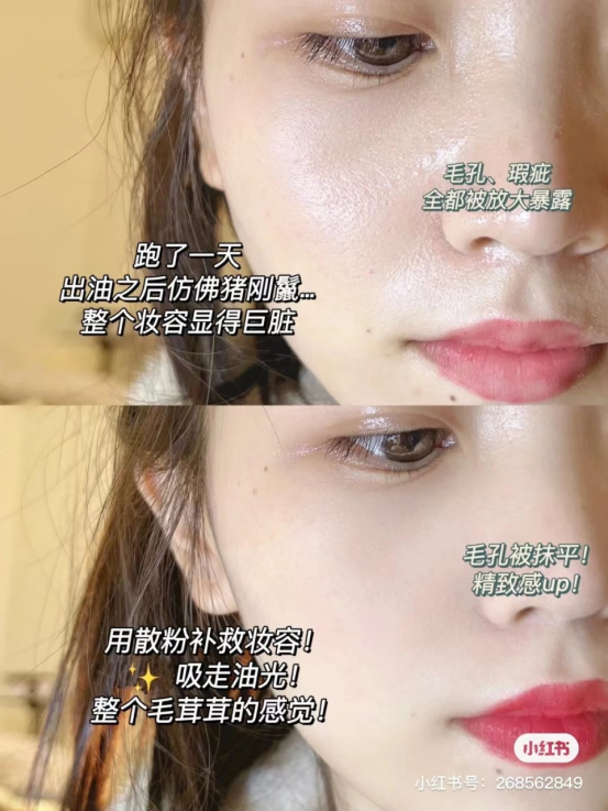 柏瑞美散粉上脸的时候,真是惊呆了我,才扑了薄薄一层妆容就变高级哑光感,而且毛孔都隐形了,就算是干皮也不会卡粉❗