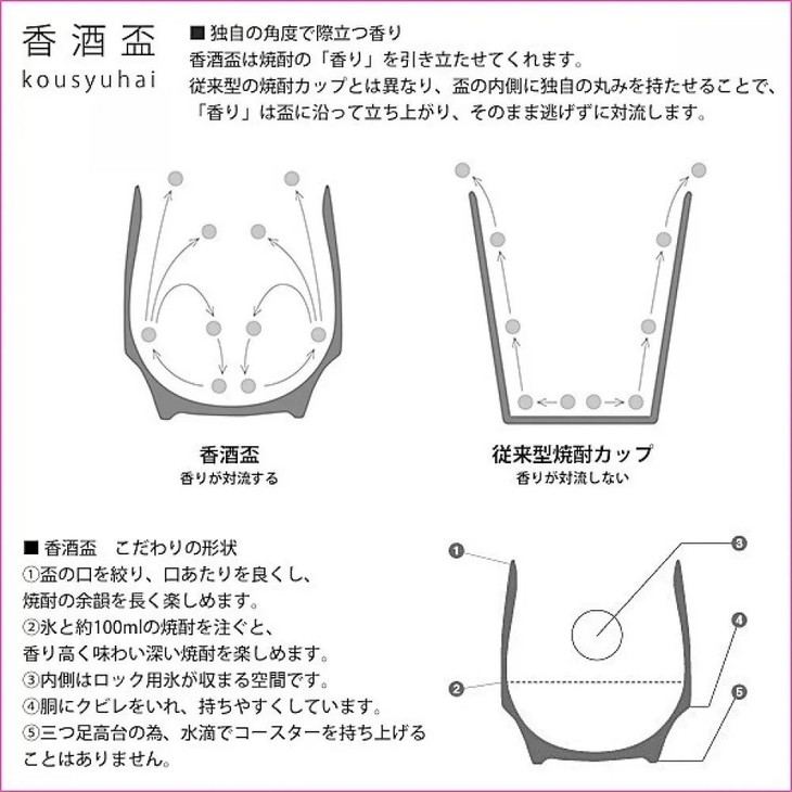 而这款Kihara的香酒盃,不但有传统清酒杯的外观和高级感,内部却使用了白葡萄酒杯一样的构造,能使香气更加聚集,并沿着杯体上升,最终与对流的空气激烈碰撞,创造出浓郁、醇厚、持久的独特气味,同时还能增加大吟酿的口感顺滑度,余味悠长。