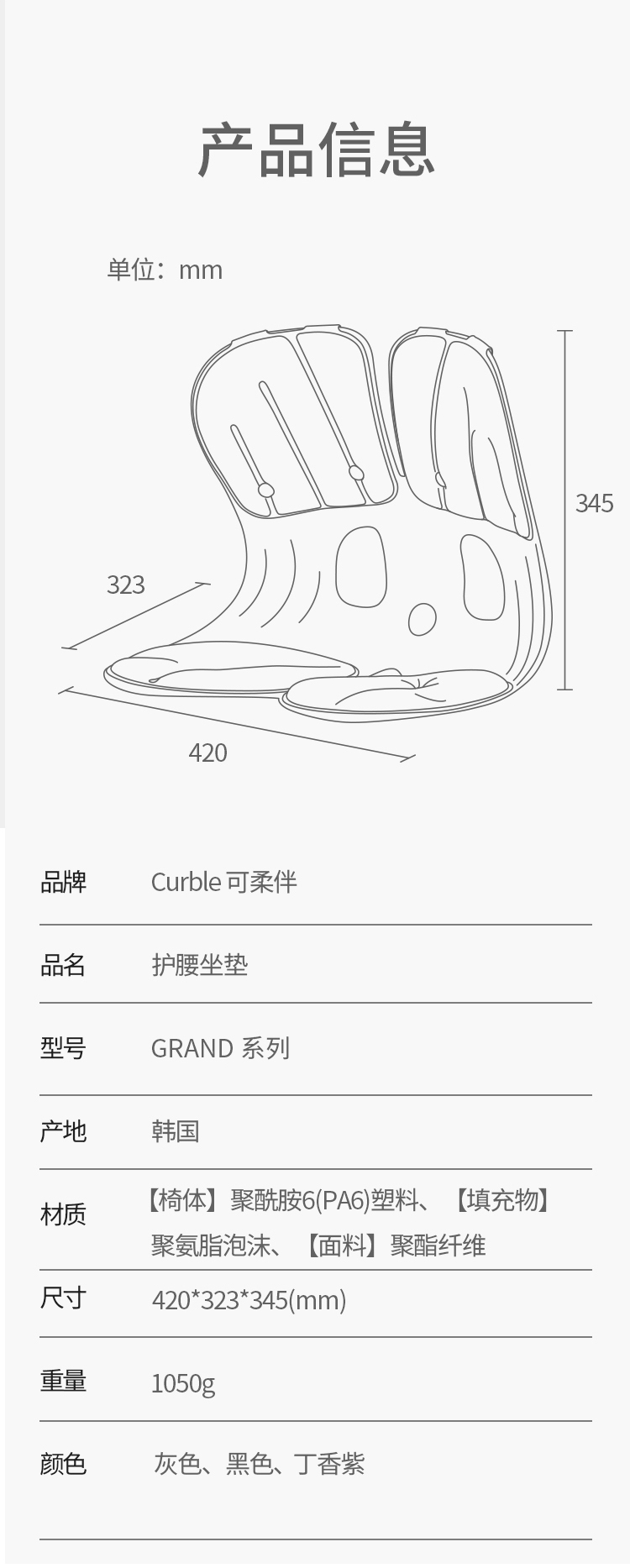 Grand系列 | 韩国原装进口curble grand办公护腰坐垫 久坐不累