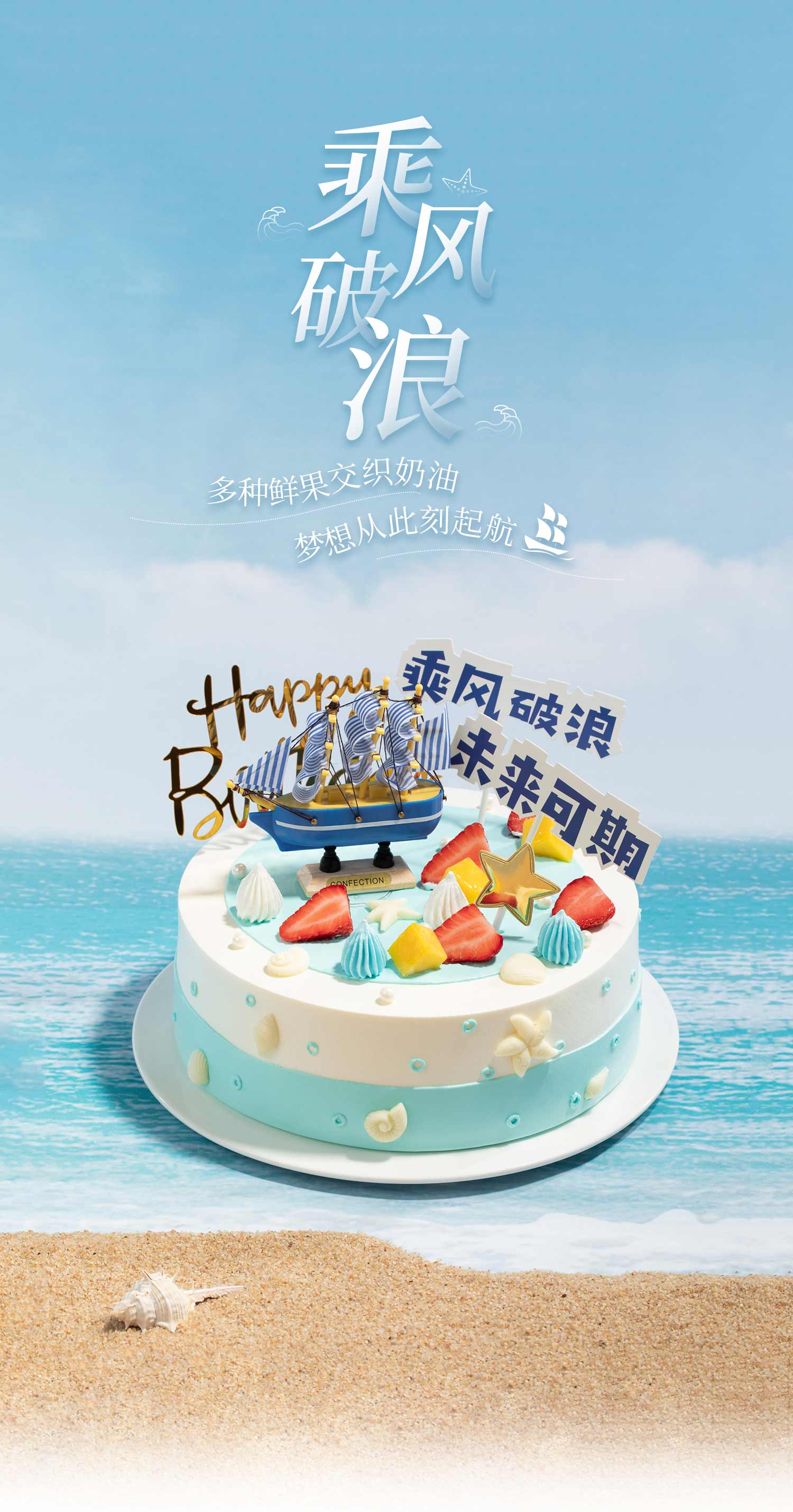 【送男生推荐】乘风破浪生日蛋糕,未来可期,全力以赴,所向披靡,有多层大磅数蛋糕可选!(YJ)