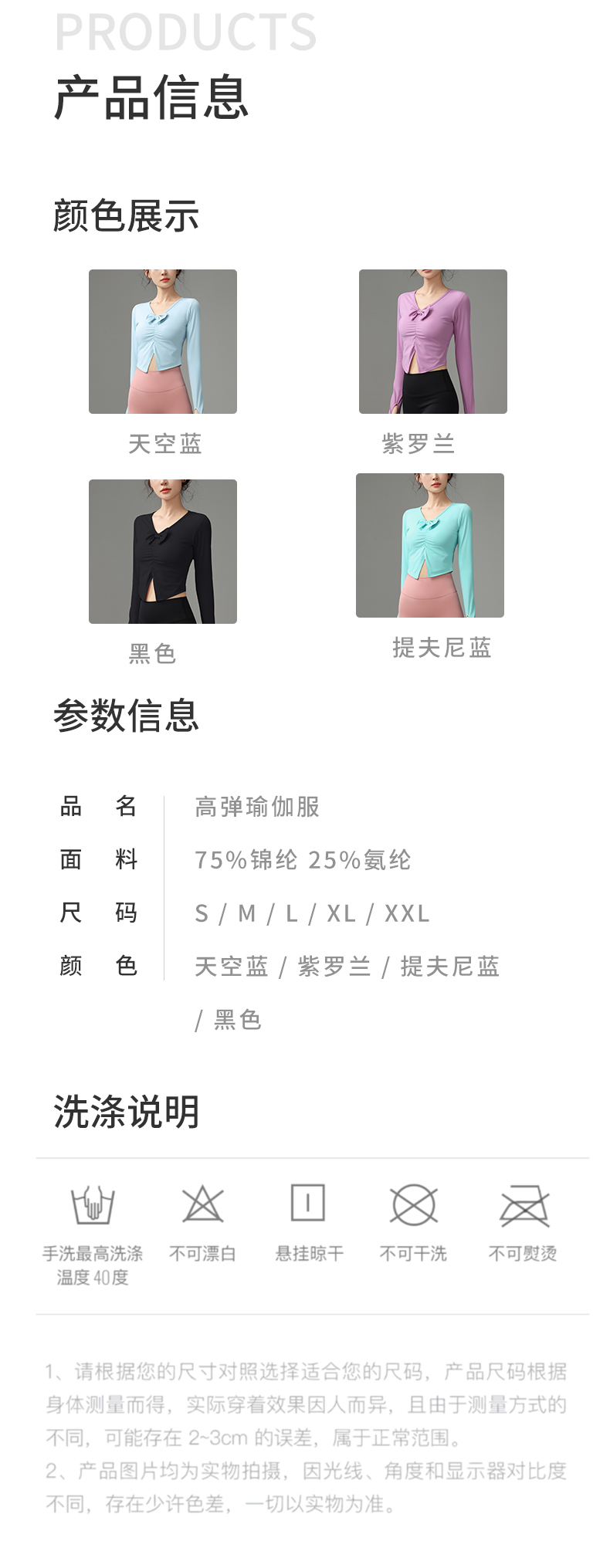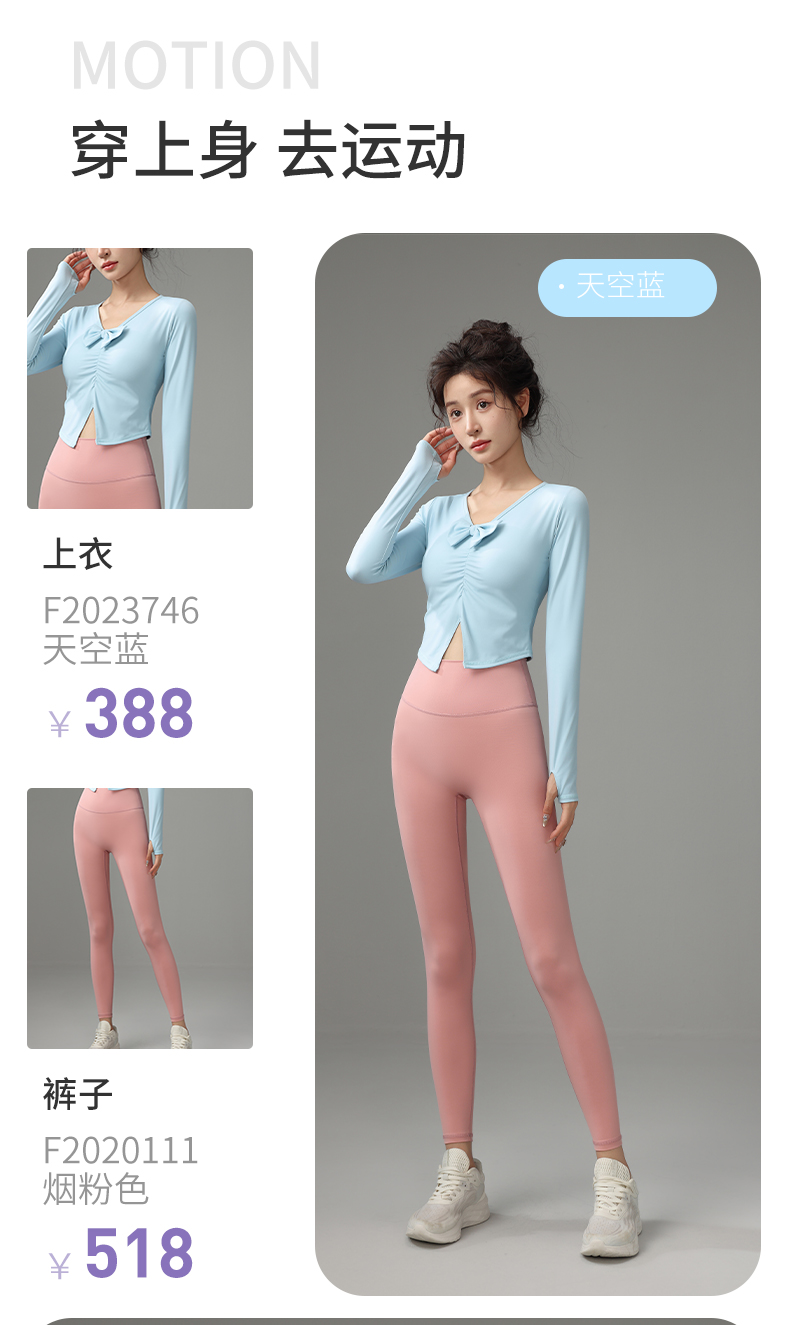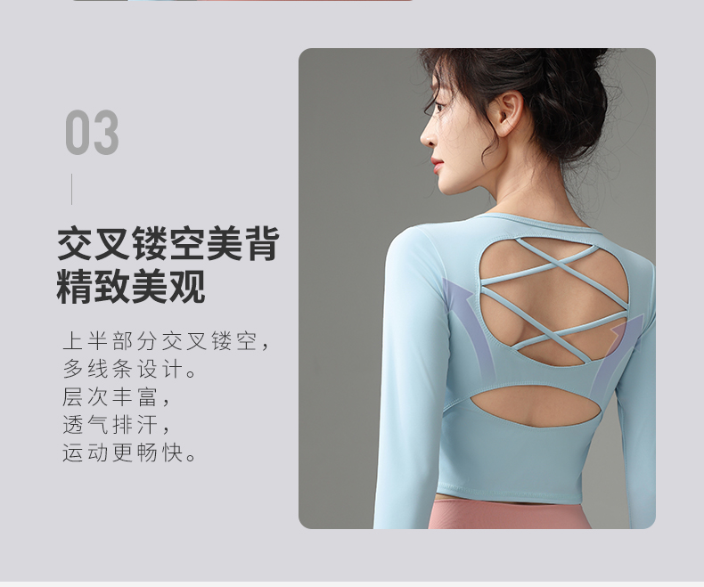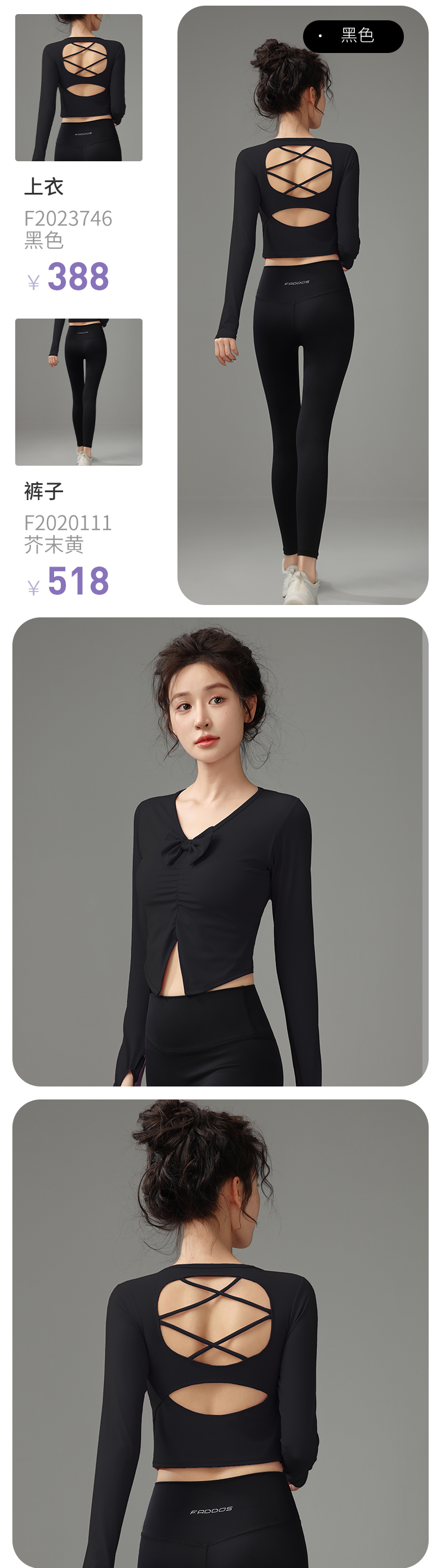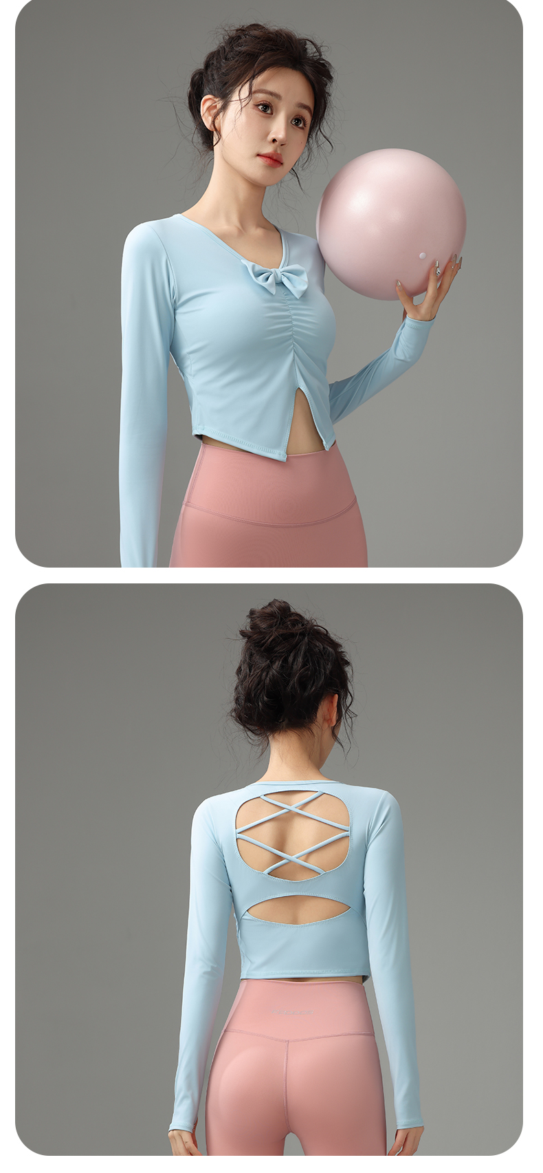 F2023746梵蒂欧V领小清新瑜伽长袖显瘦小蛮腰瑜伽服长袖一体杯