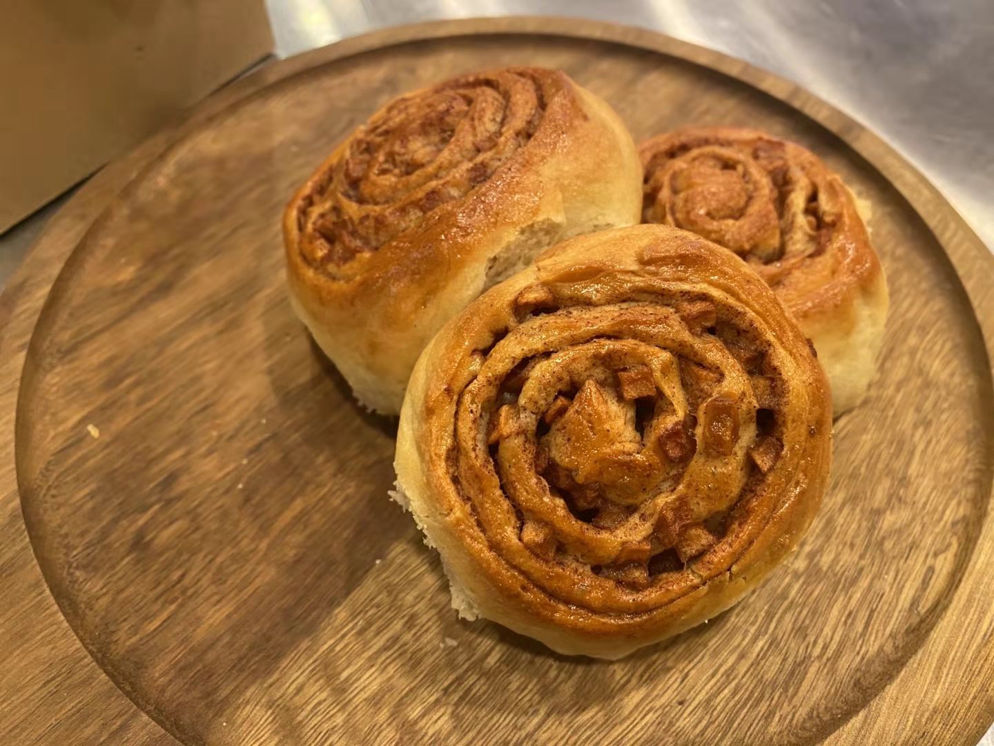 快乐返乡青年中筋面粉,水,天然酵母Lucy,有机山核桃,有机肉桂粉,有机黄油,藏青盐,耐高糖干酵母。